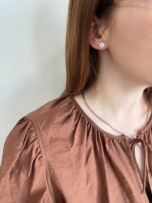 Huggie Hoop Earrings in Sterling Silver with Diamonds