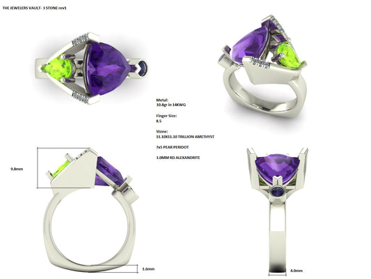 A very chic client wanted a unique twist on her Mother's ring. She incorporated her husband, son, her mother and her own birthstone in this dynamic three stone ring.Regular price $25,000.00Regular priceUnit price / perSale price $25,000.00Sold out -