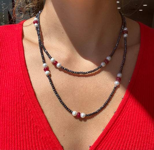 Spinel Ruby Pearl Long Necklace