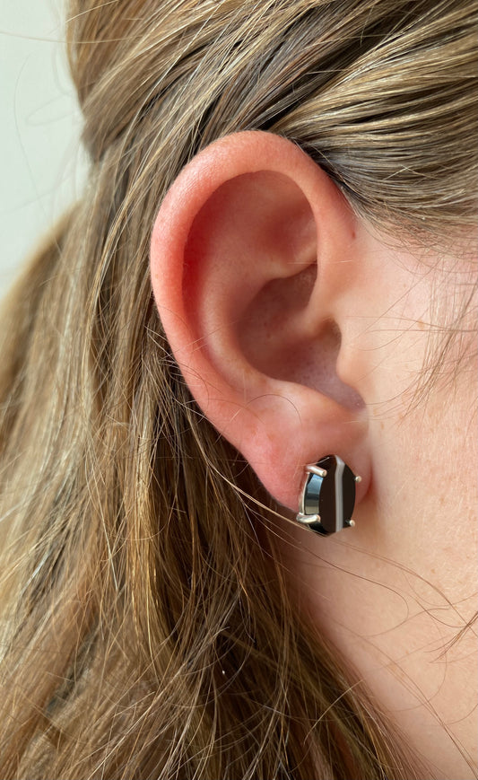 White Strip Onyx Earrings