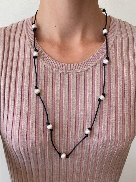 Pearl and Black Leather Necklace