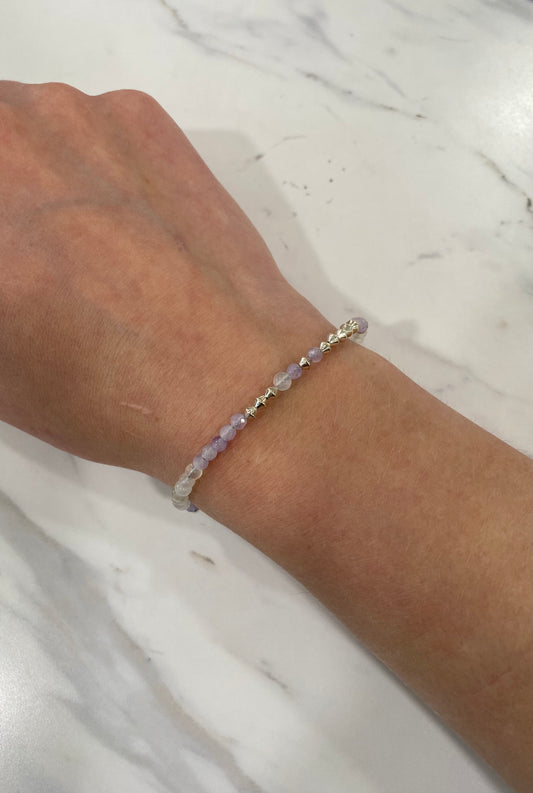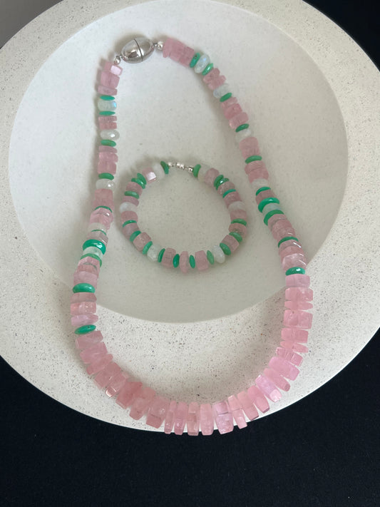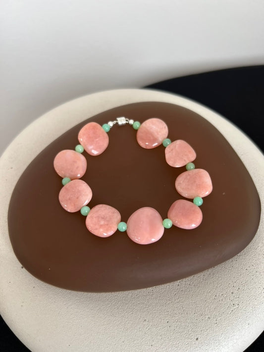 Morganite, Moonstone, and Emerald Beaded Bracelet