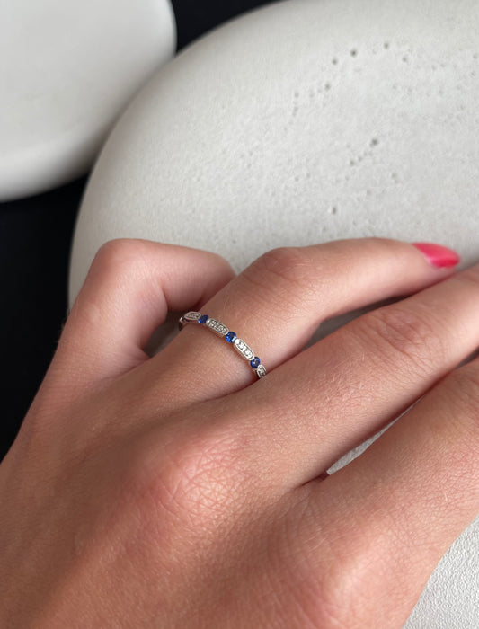 Milgrain Sapphire and Diamond Band