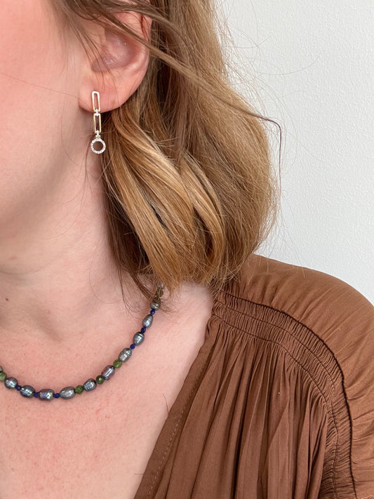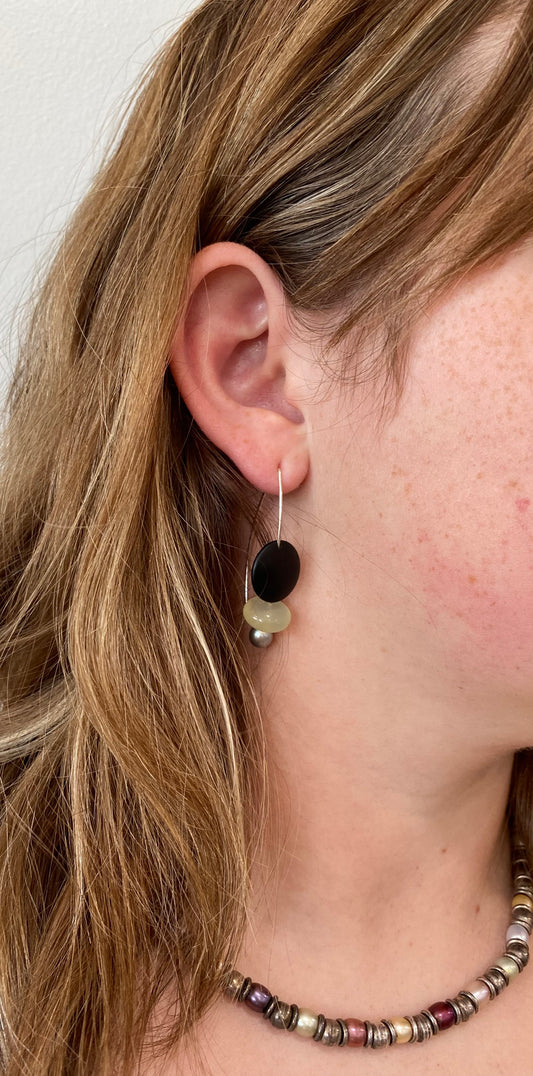 Sold outOnyx, Pearl and Chrysoprase Earrings