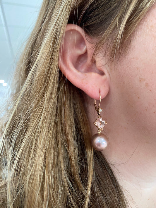 Morganite and Pearl Earrings