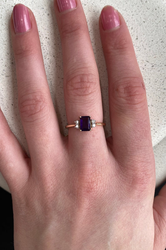 Amethyst Triple Stone Ring