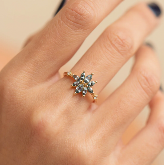 Bouquet Engagement Ring with Teal Sapphire and Diamond Petals