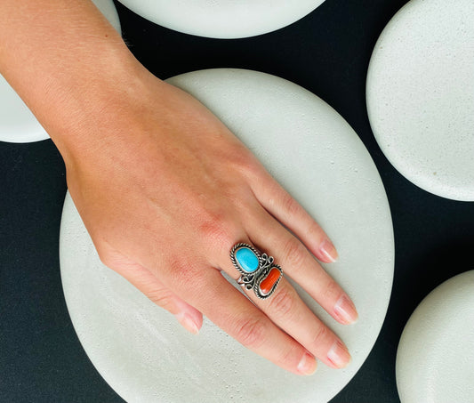 Coral and Turquoise Vintage Ring