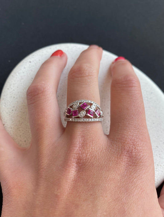 Ruby and Diamond Scattered Bridge Ring