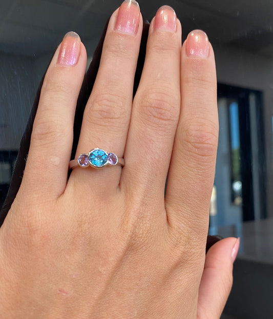 Sold outSwiss Blue Topaz Amethyst Ring