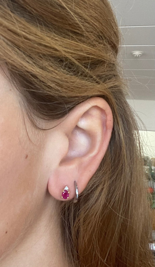 Oval Ruby Studs with Diamond Accent