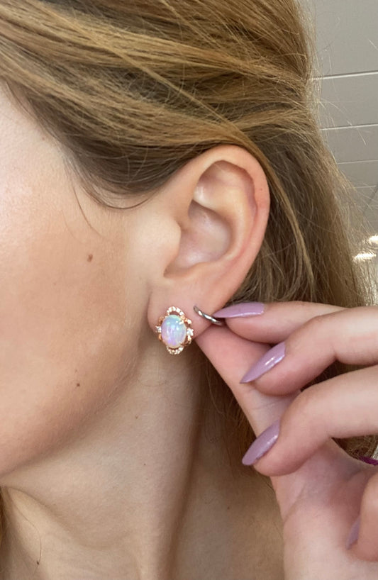 Opal Diamond Rose Gold Scalloped Earrings