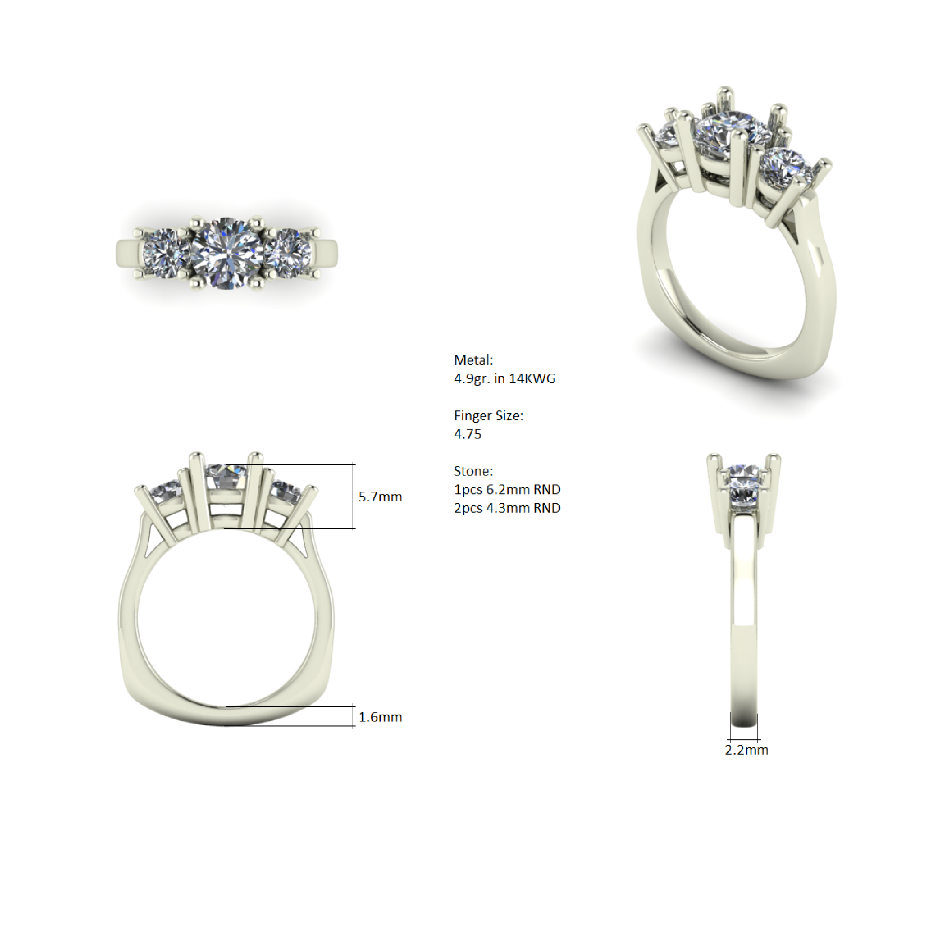 To celebrate their 35th anniversary we matched her original diamond and used them as side diamonds to accent the new center diamond. We designed the square Euro shank bottom so it doesn't turn on the hand.