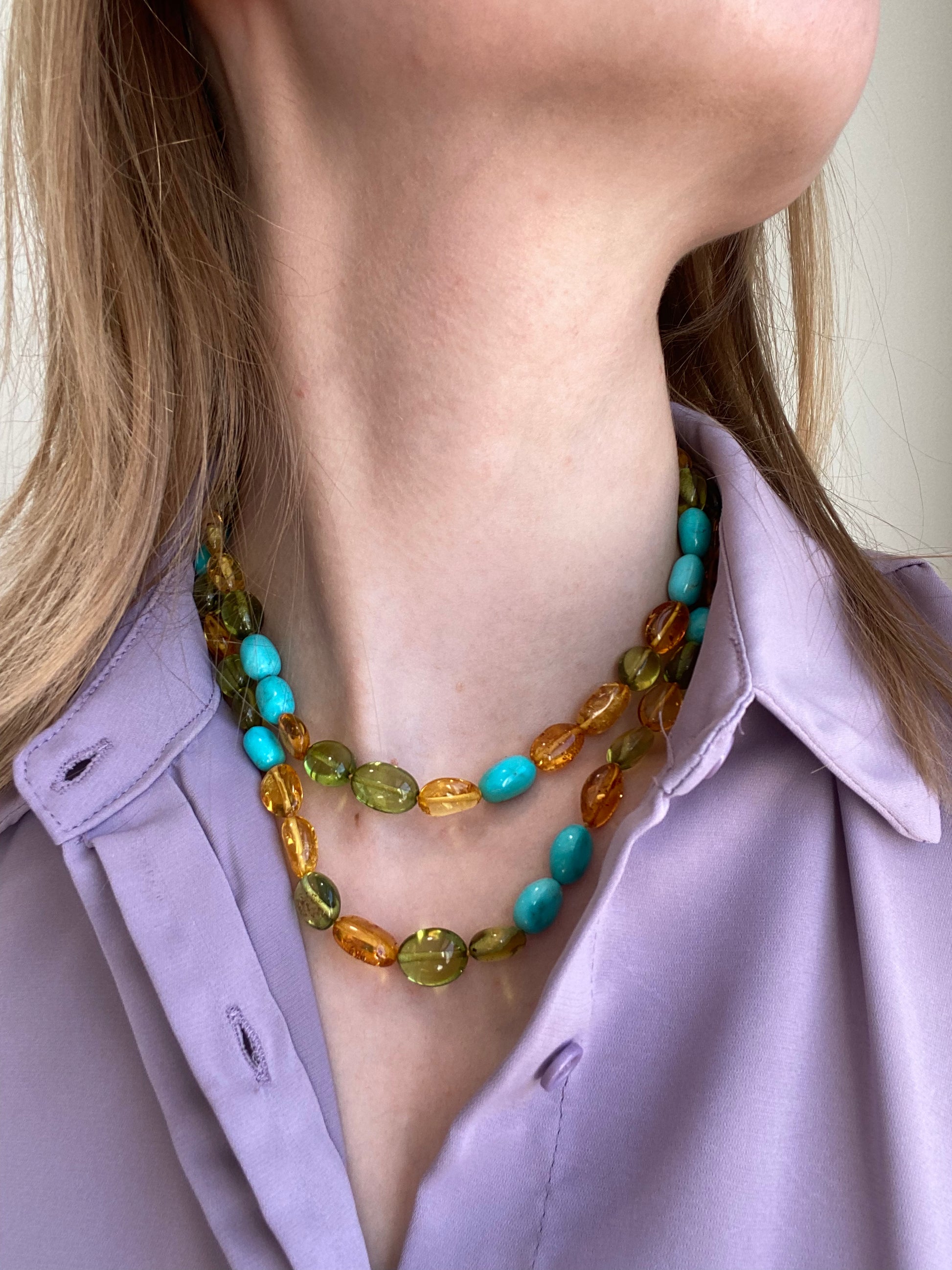 Blue turquoise nuggets - all gemstones hand cut - with gold vermeil clasp