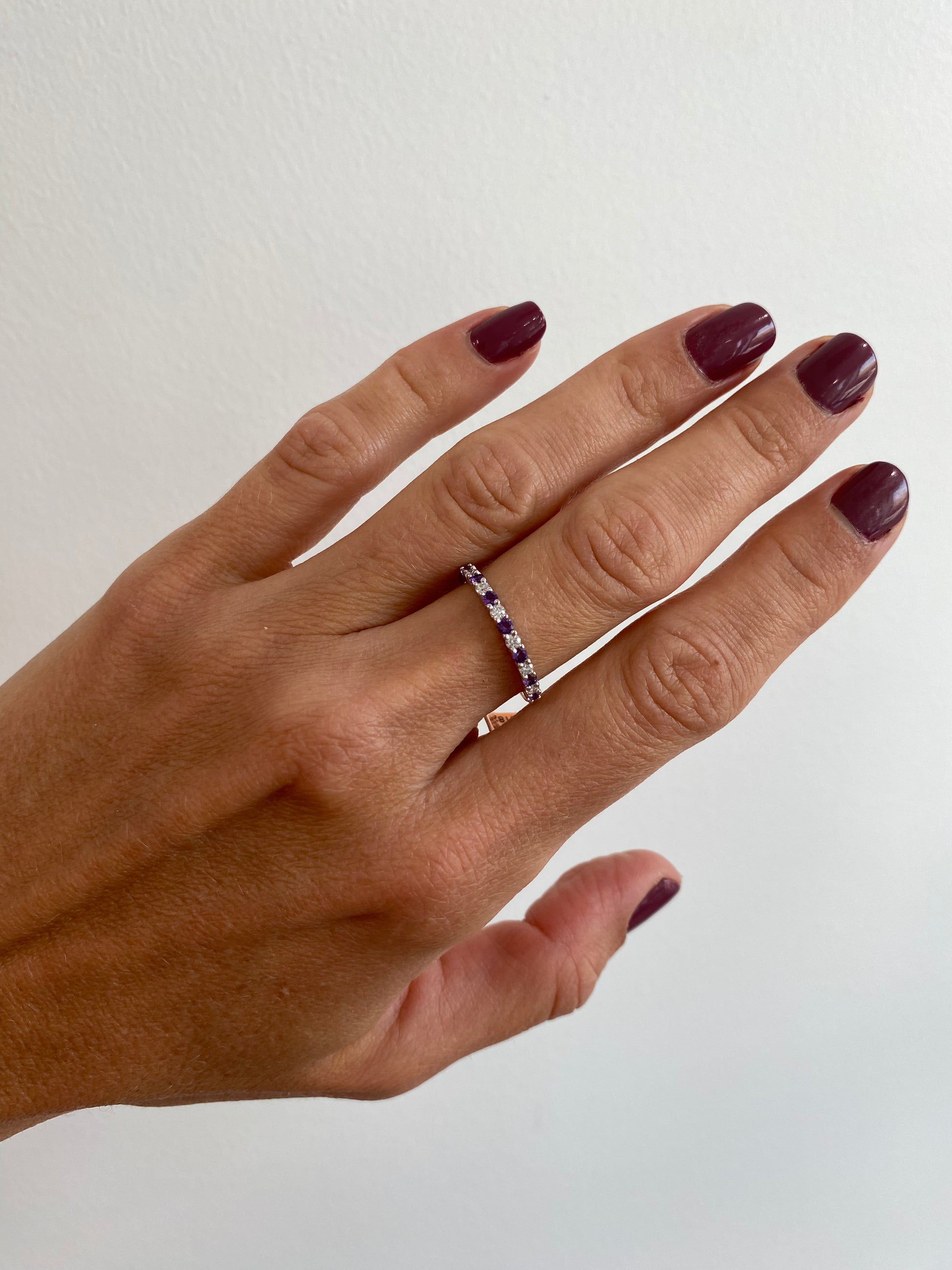 14K Yellow Gold Amethyst & Diamond Stackable Ring