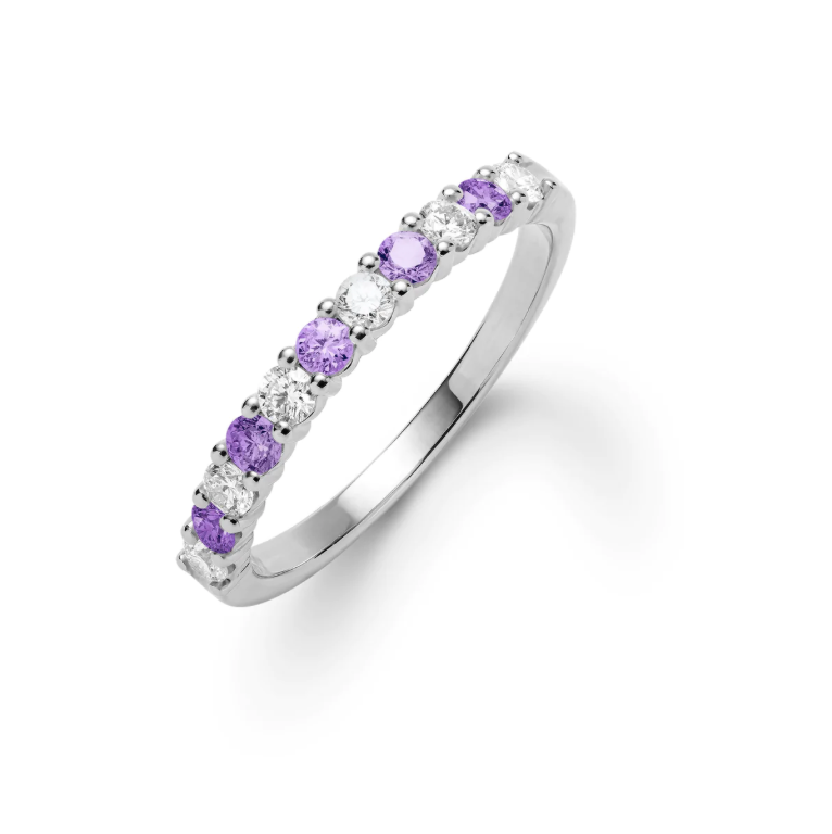 6 Round Diamond 0.18ct, 7 Round Amethyst 2.0mm each