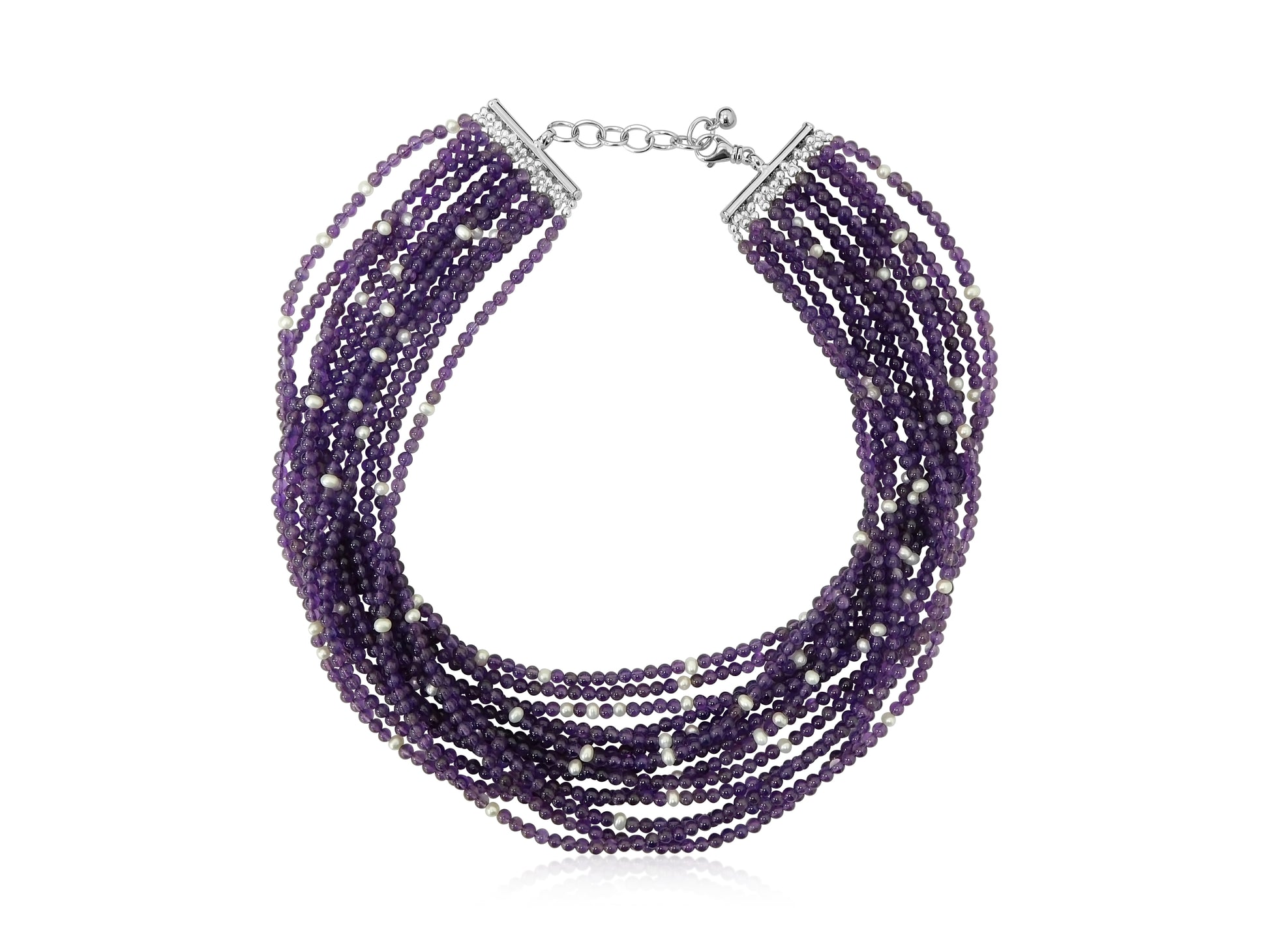 Vivid purple amethyst 3mm round beads hand strung into 14 strands