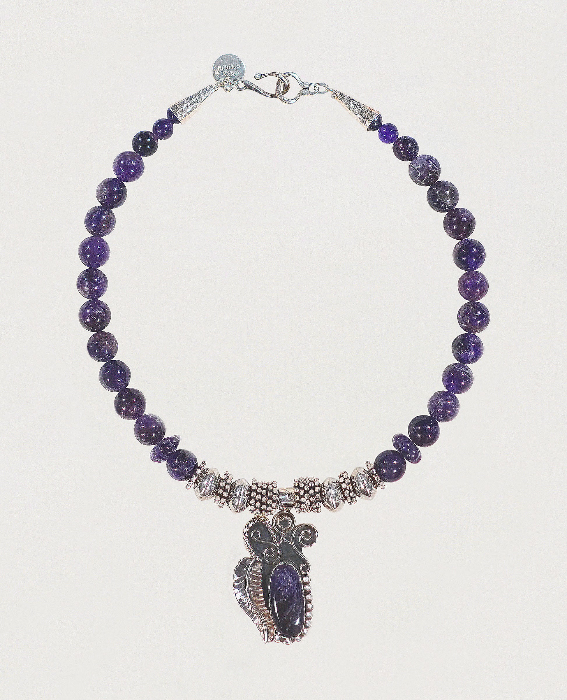 Rich hued natural amethyst beads and Bali silver. Accented with a vintage Native American pendant and silver clasp