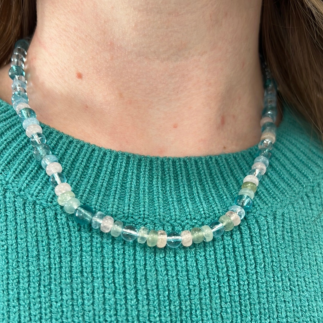 Apatite, Aquamarine, and Pink Beryl Necklace