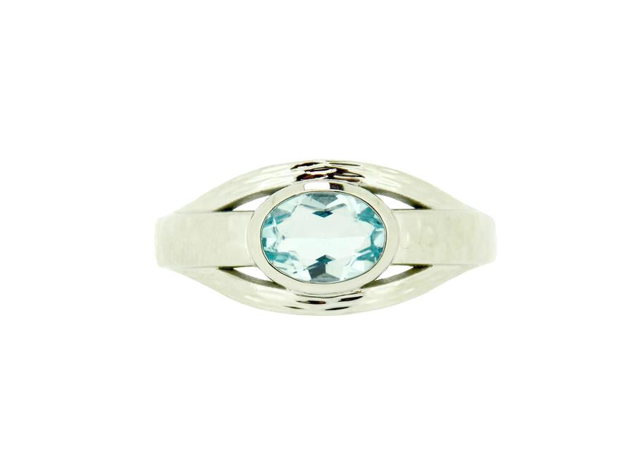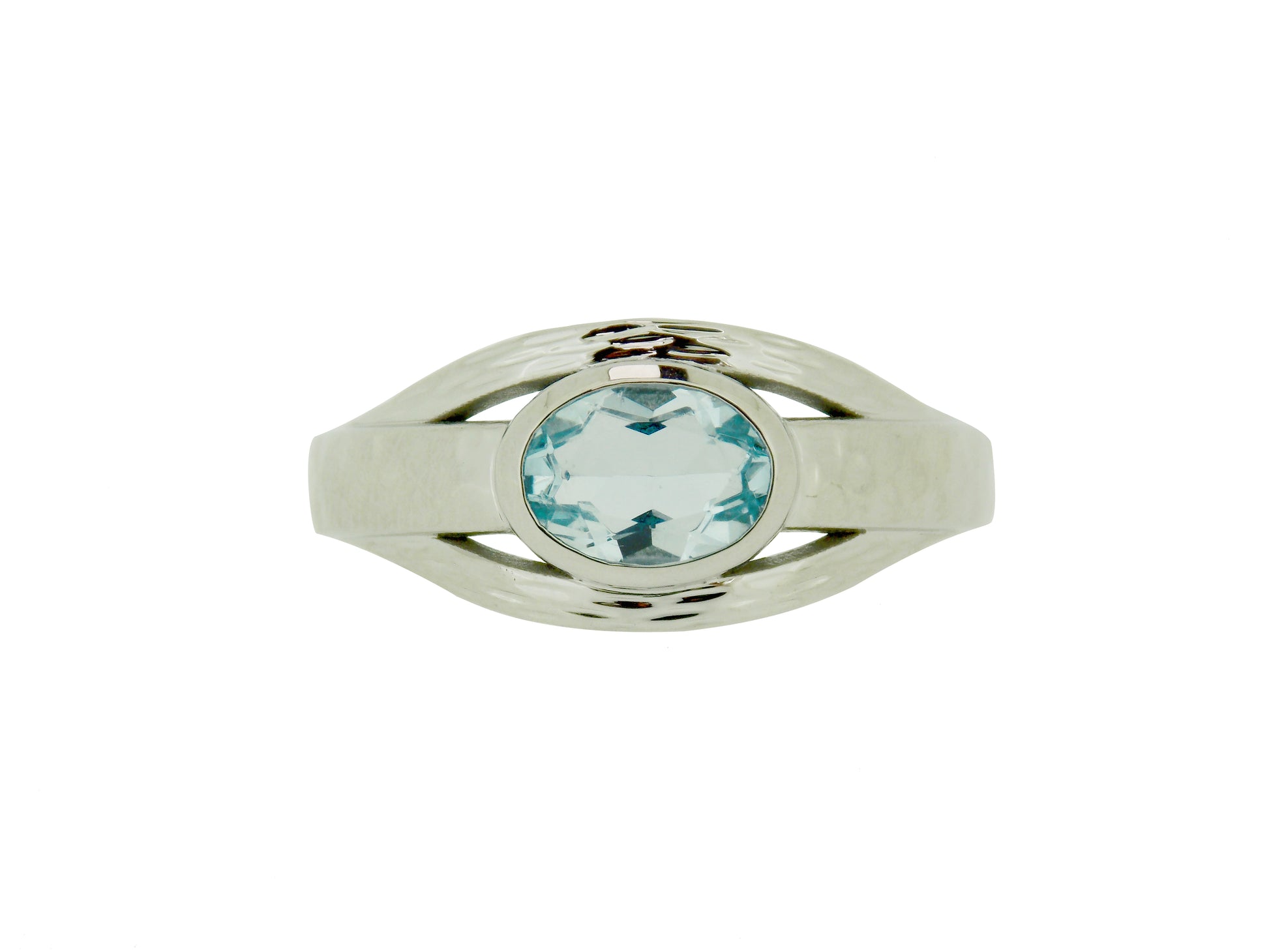 This is for a wonderful customer who had received the aquamarine stone when her first child was born 35 years ago. Her daughter is also a March birth. The stone was sentimental to her -but the mounting didn't ever quite represent her style. But the new ring is perfect! The finished is hand hammered and looks fantastic!