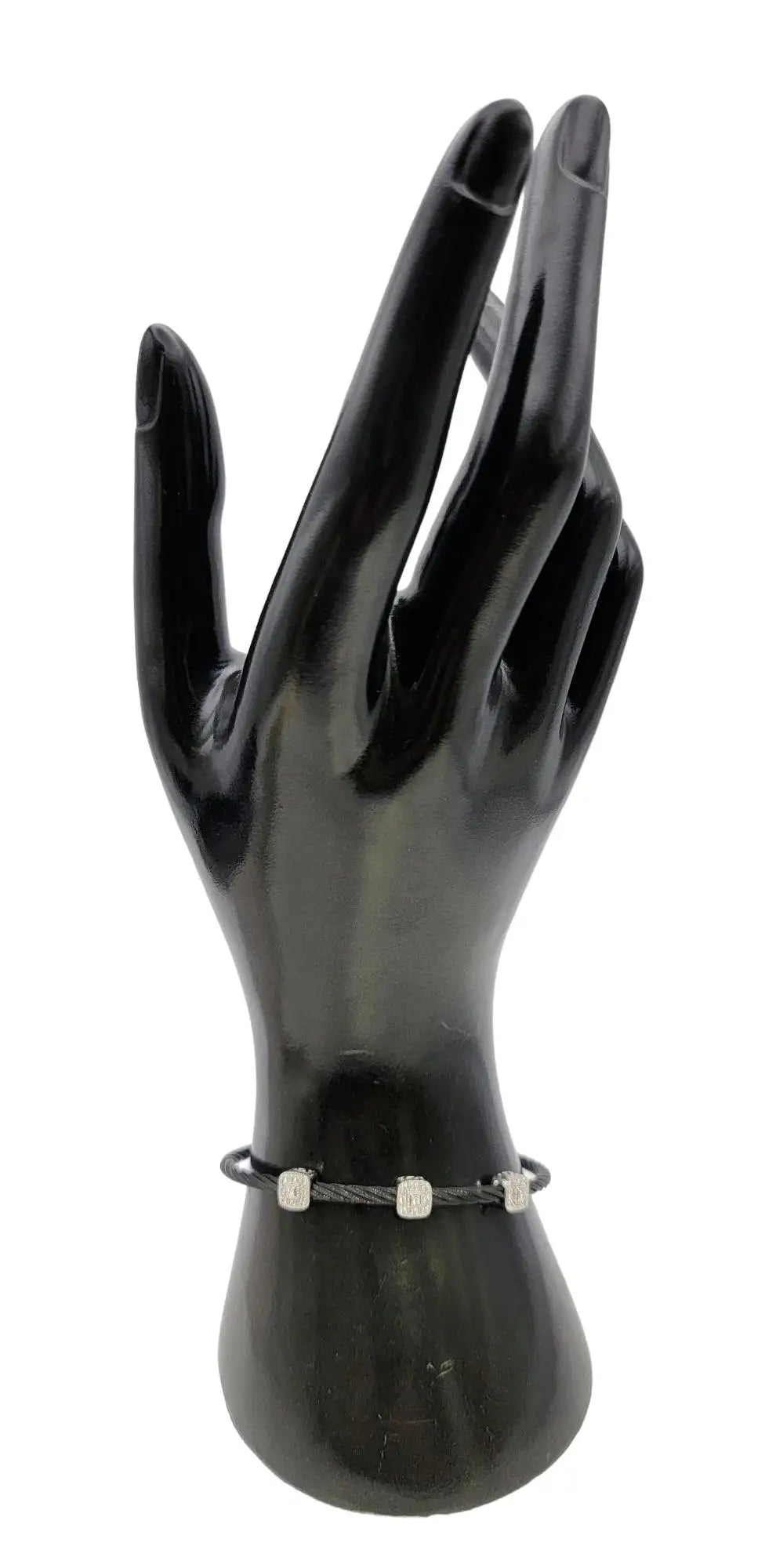 Swiss Company Charriol diamond stationary black stainless steel bracelet, .10 ct tw diamond spaced out with 18kt white gold accents
