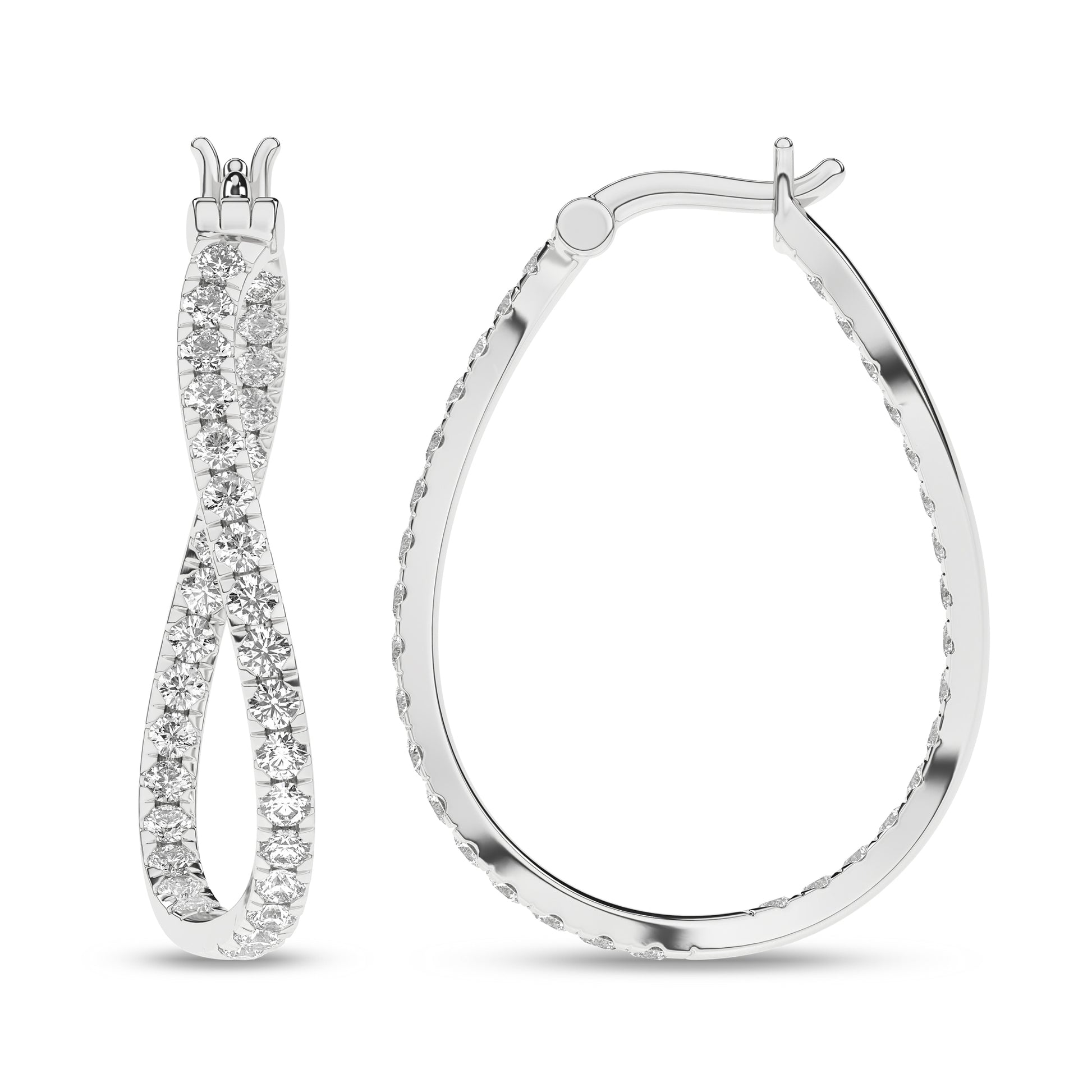 14KT White Gold Curved Inside-Out Hoop Earrings with 1.5 ctw of mesmerizing lab grown diamonds in EF color and VS clarity.