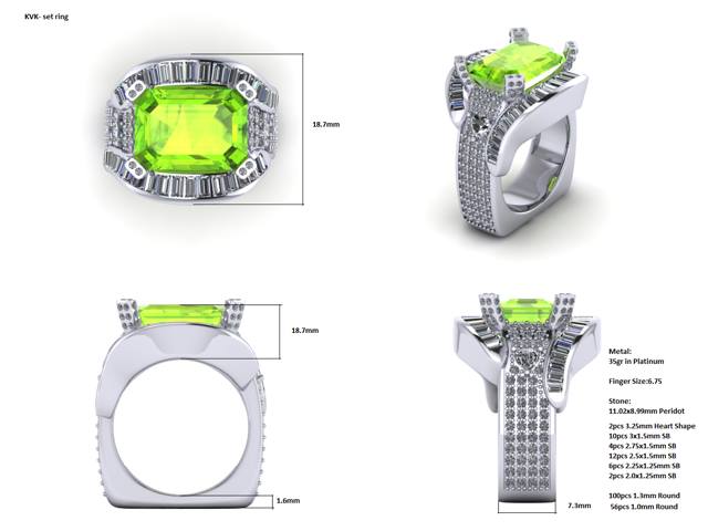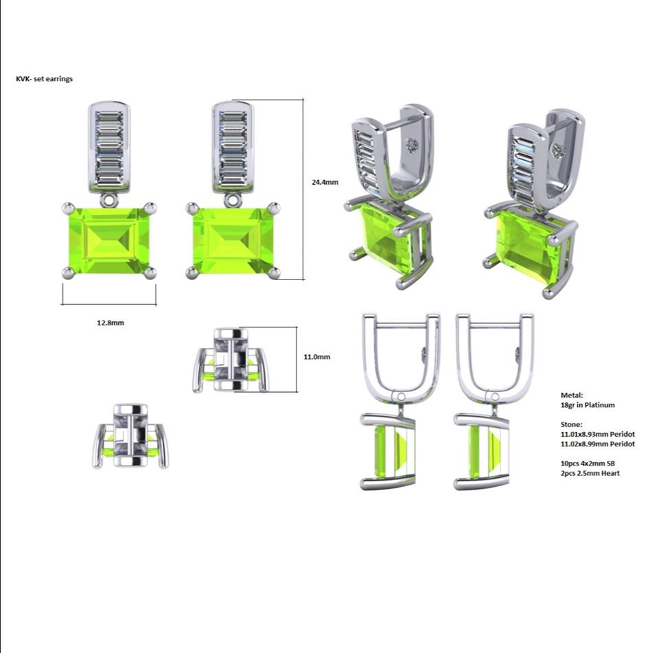 Custom Platinum, Diamond and Peridot Ring and Earrings