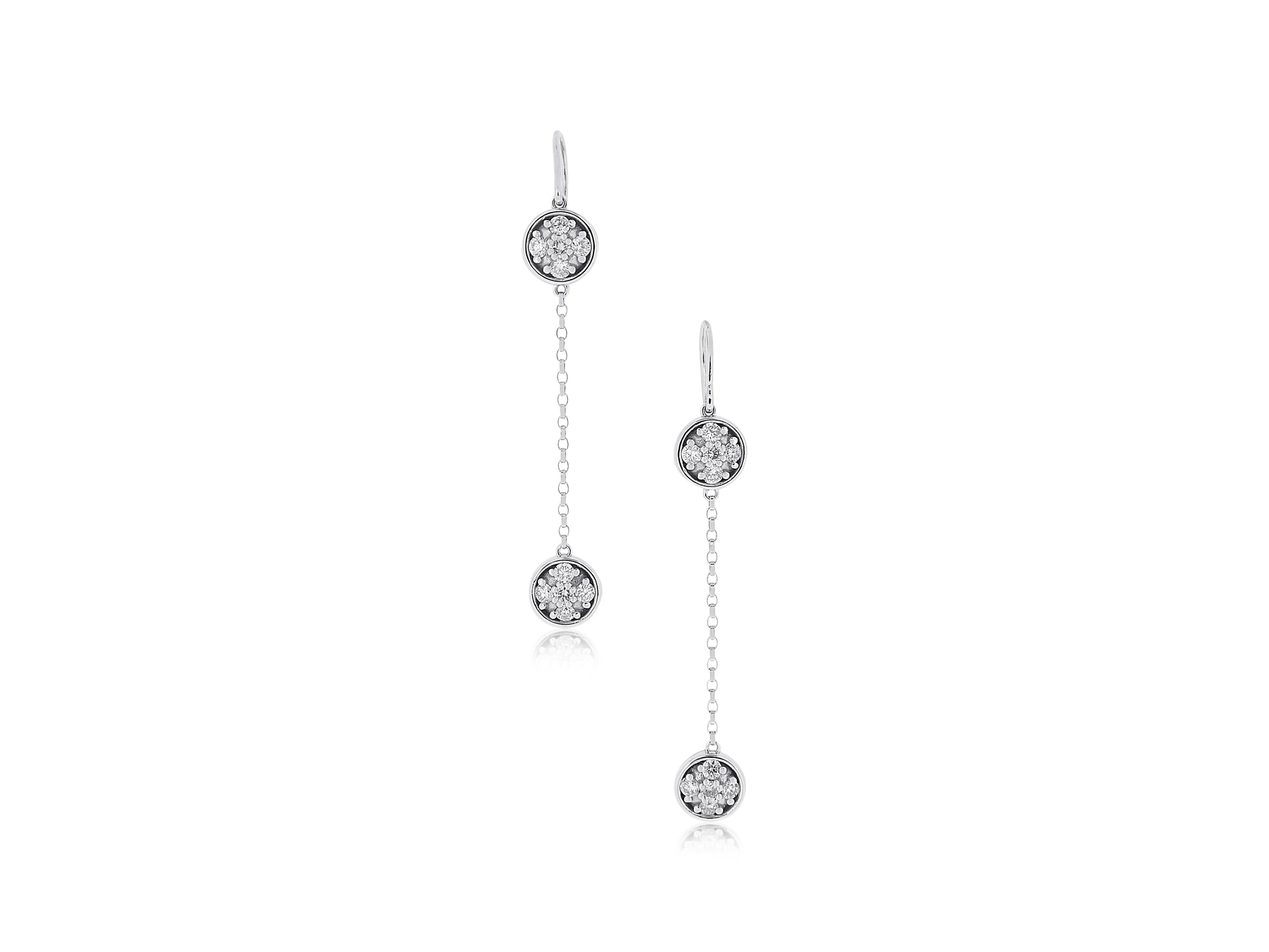 Custom designed double diamond cluster discs. Each disc features five diamonds. The client had the diamonds left from a ring redesign we did for her. We took her twenty diamonds a turned them into fabulous earrings.