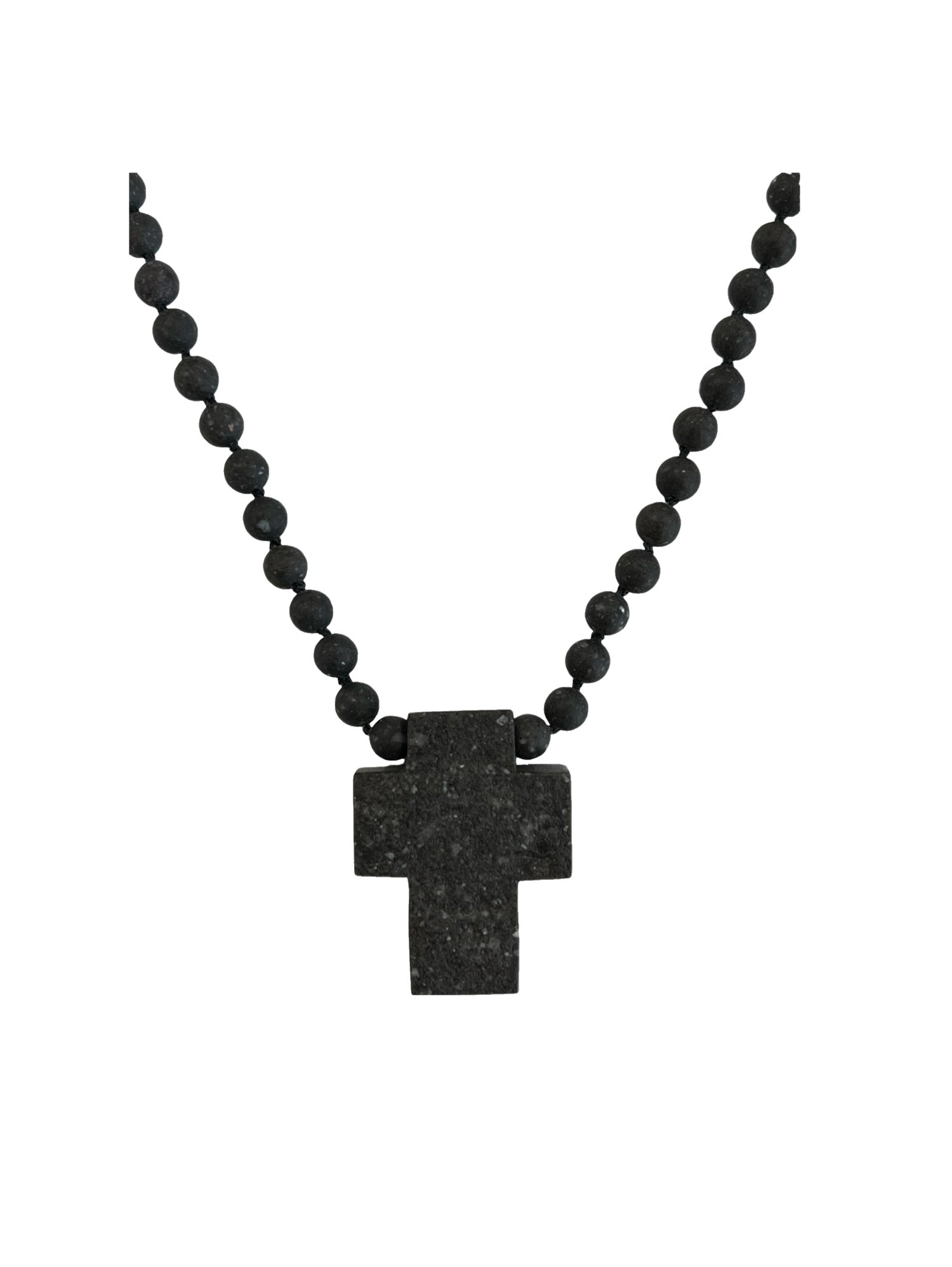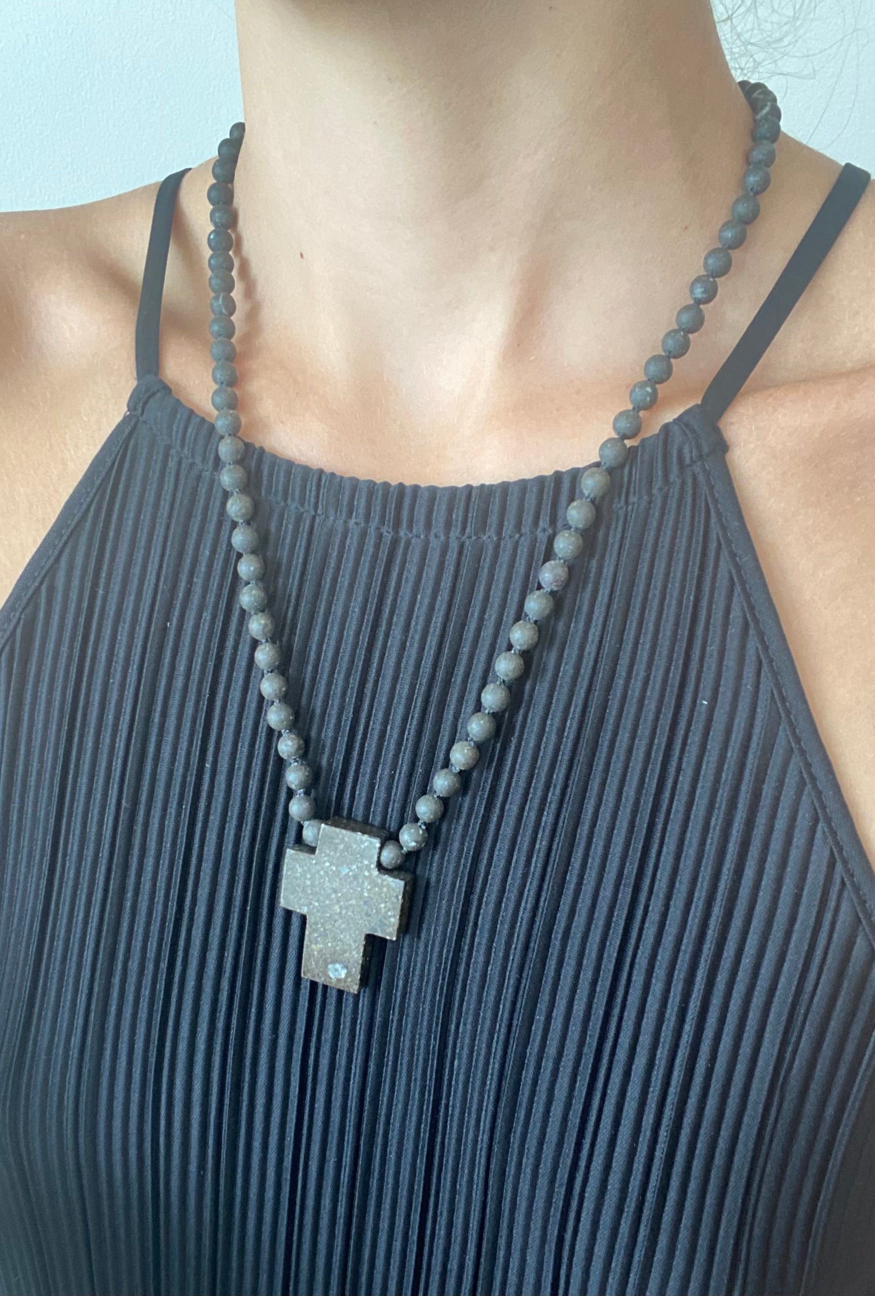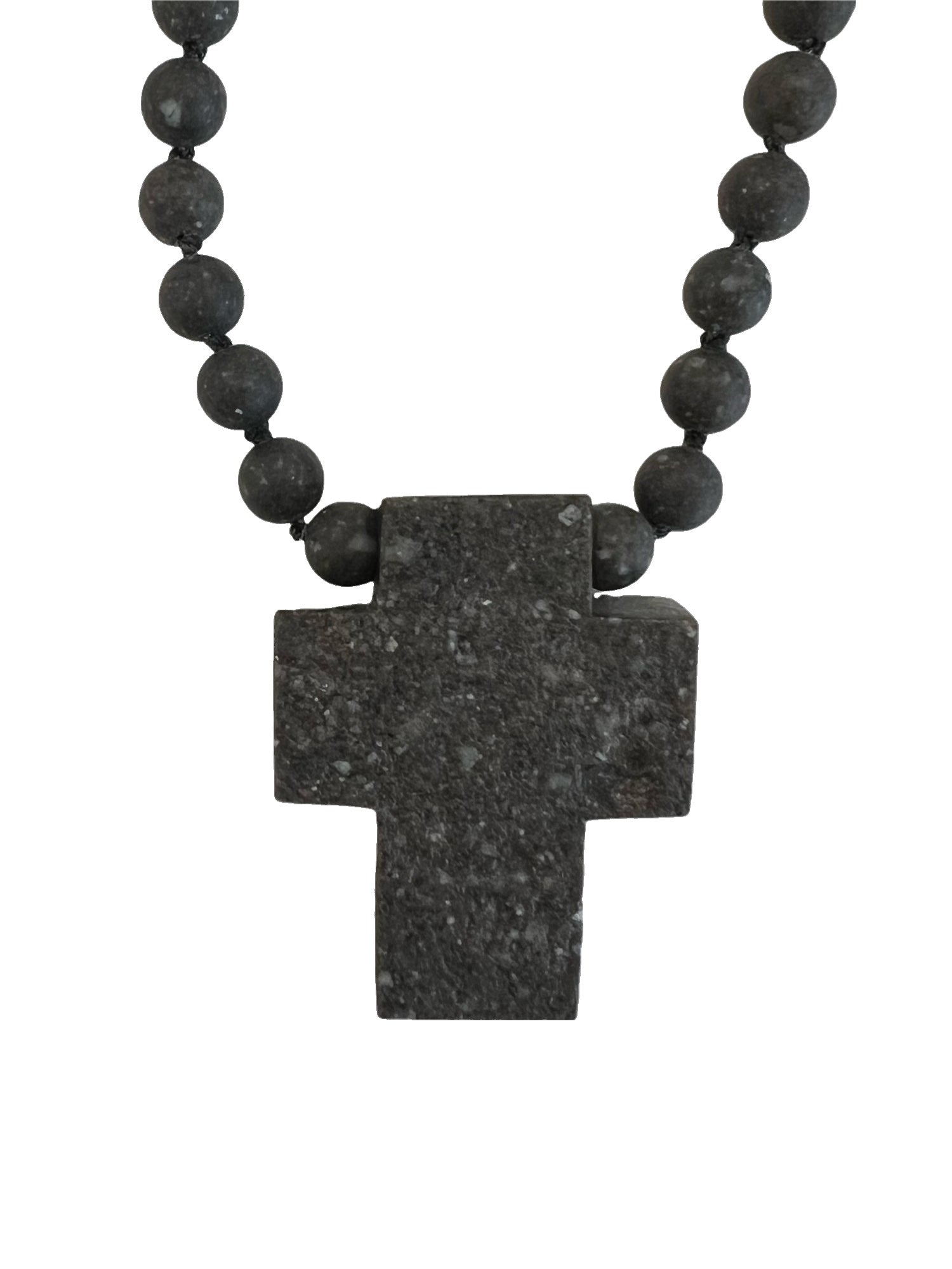 Round beads 6mm and the hand cut cross is 1.5" in length