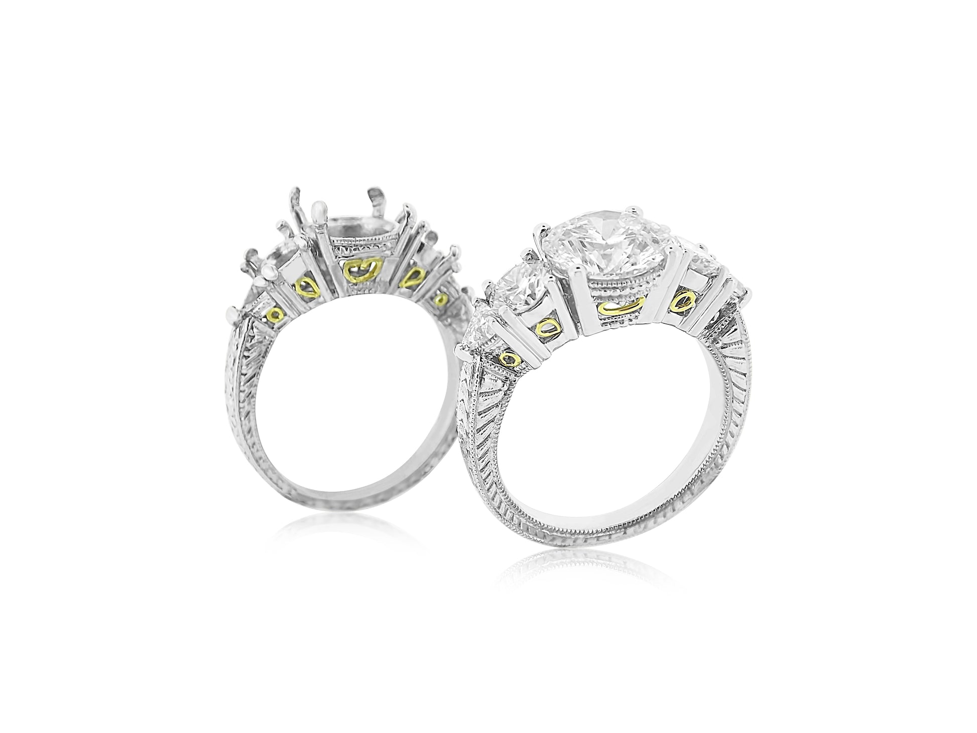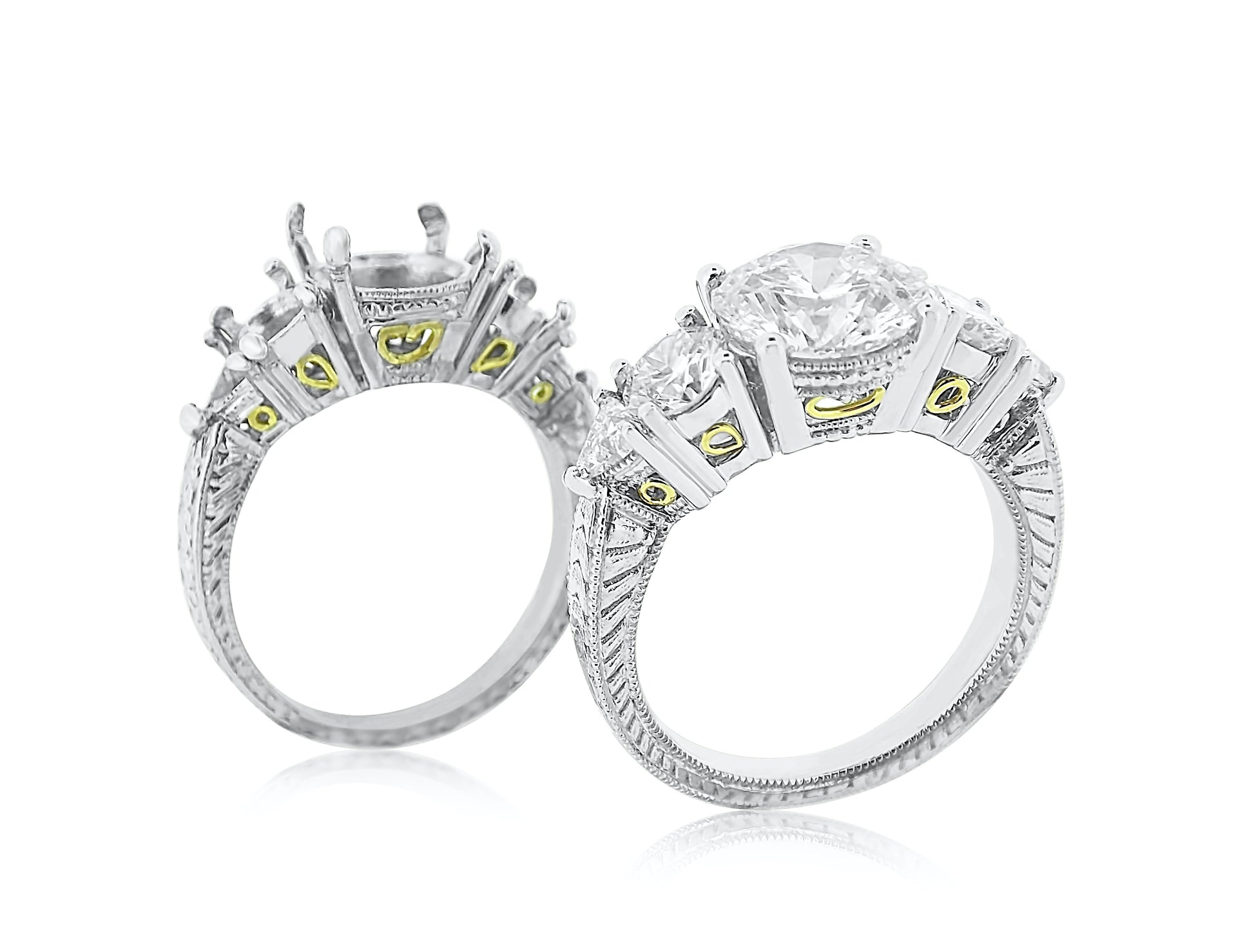 This customer loved her original ring. The problem was, after 30 years of daily wear...it was worn out! At The Jewelers Vault we have the ability to do an exact duplicate of your jewelry! One ring and two daughters...no problem. We can do an exact replica of your sacred jewelry...right down to the worn pattern in the gold.