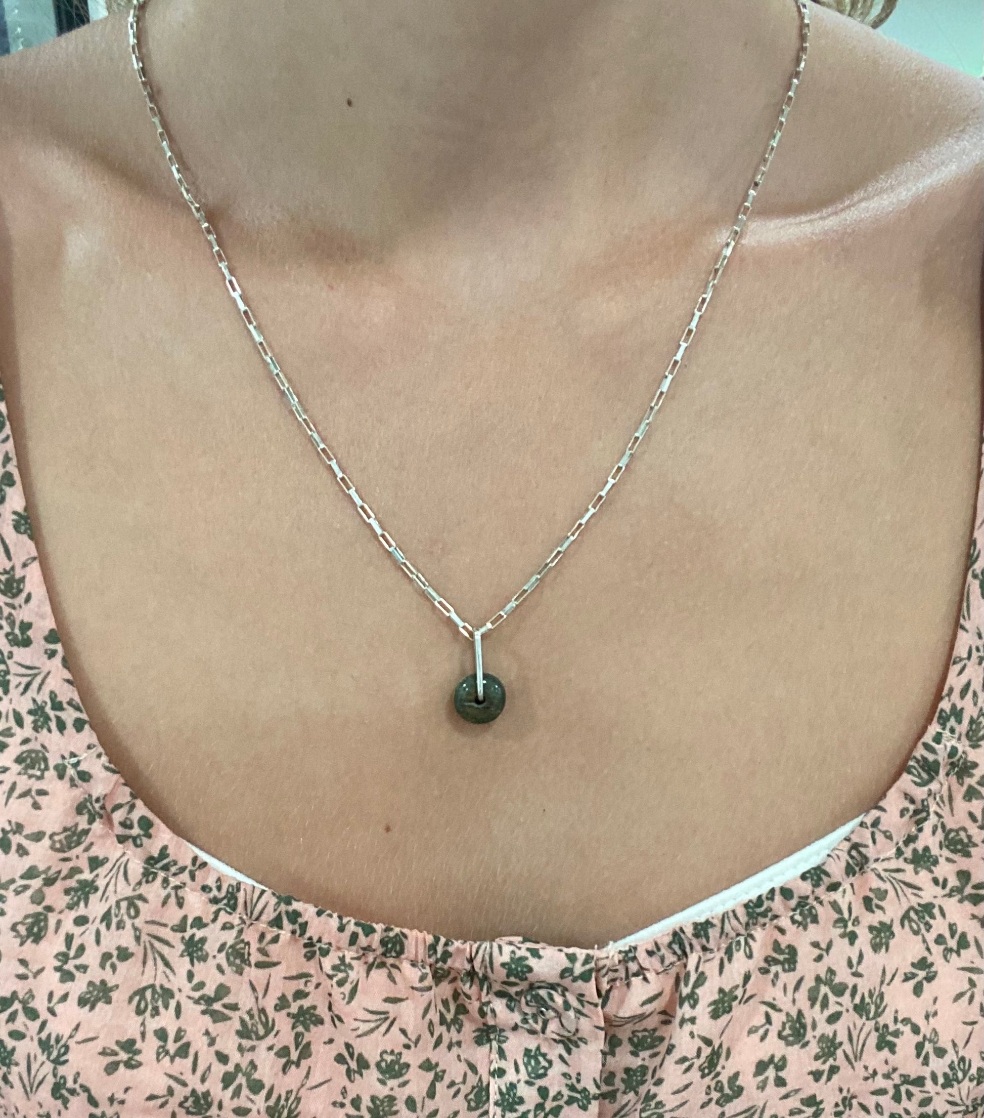 Fossilized woolly mammoth ivory disc - 11mm- rich green hue on one side and a darker color on the other side - nature is quite grand!