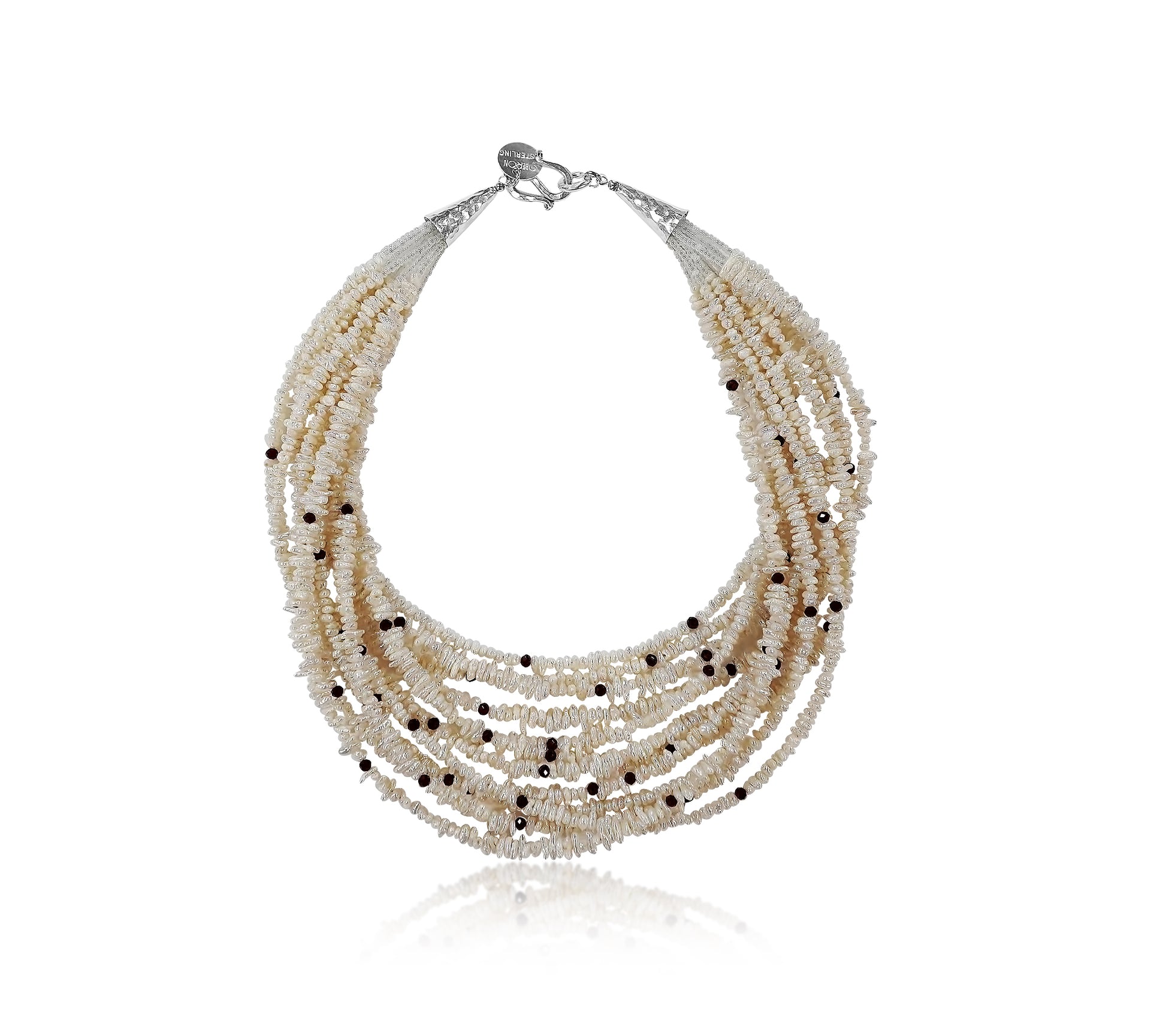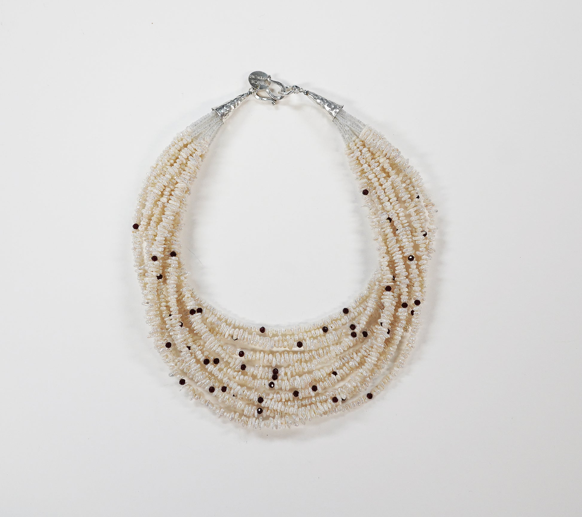 Freshwater Rice Pearls and Garnet Multi Strand Necklace