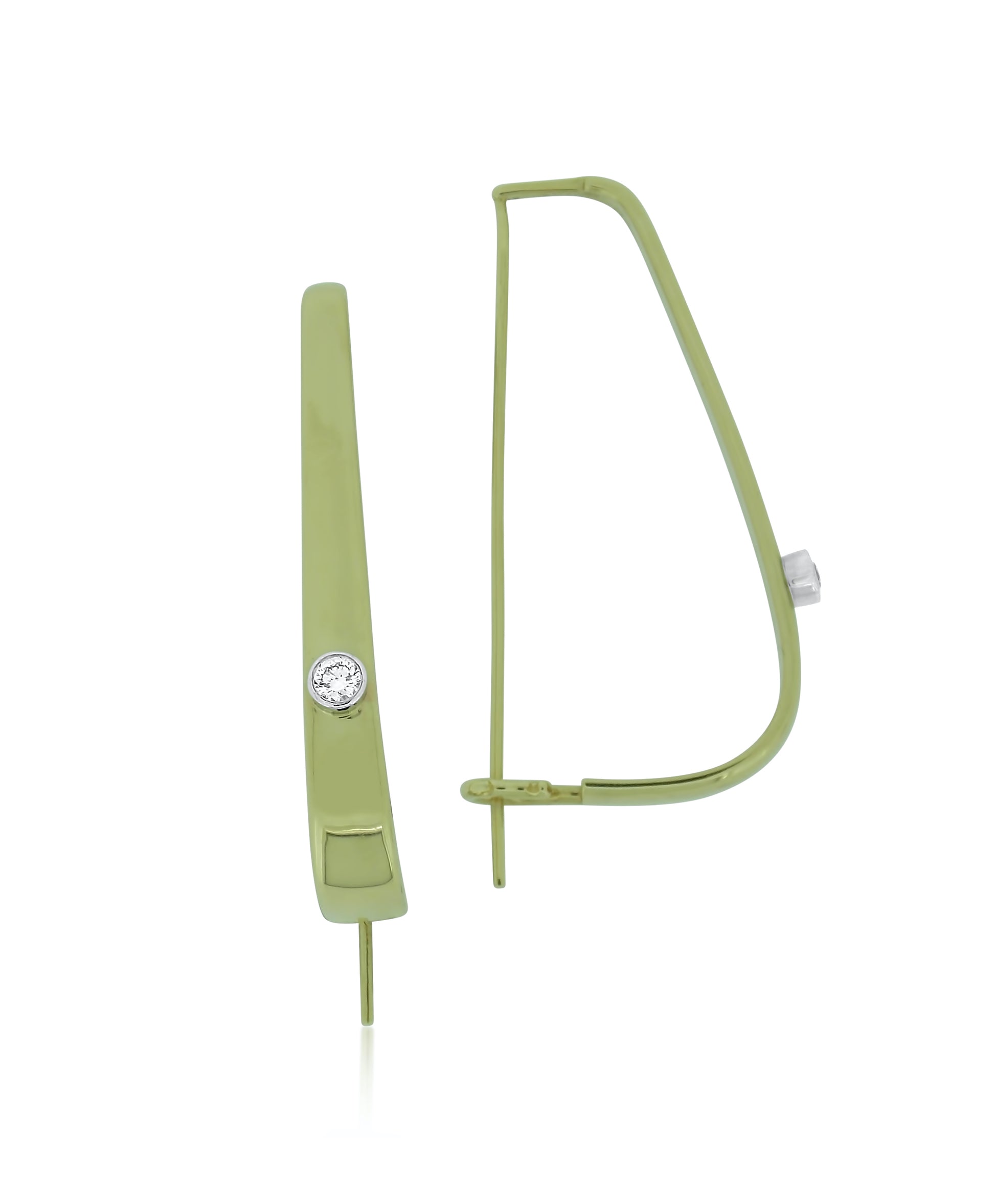 These hand fabricated earrings are designed to go through the lobe like a French wire and connect at the base for security. This very chic, darling client loves them and adores they can be worn for casual, the law office and dressy occasions.