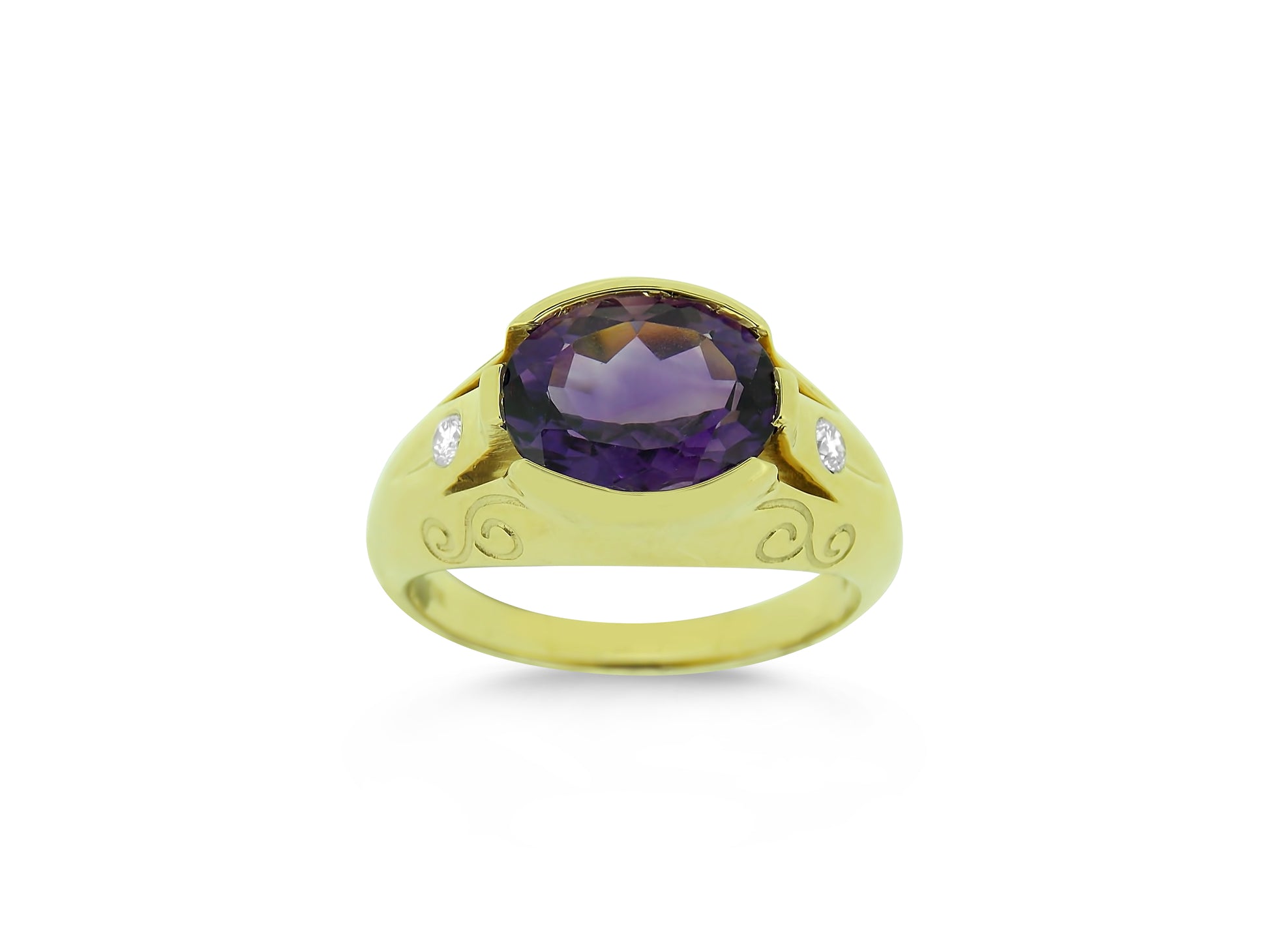 This lovely customer wanted to have a ring designed that honored her Grandmother. The client's sister had inherited the grandmother's amethyst ring so we had fantastic close up photos and the mm dimensions to work with and we were able to so it make a close replica of the original ring. The sketch on the side is all hand done to mimic the original. Although in the new and improved model we added the two small diamonds on the sides so the piece is uniquely my customers!