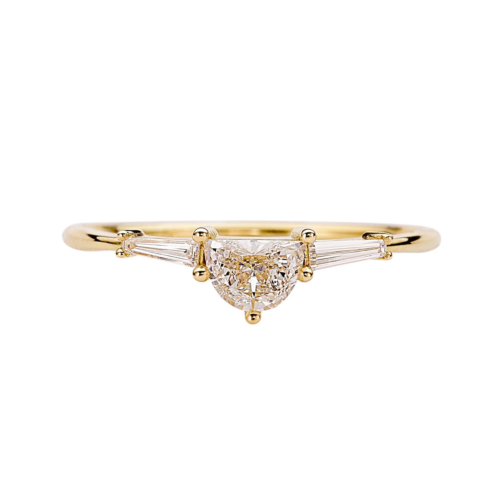 0.25 ct Half Moon White Diamond and 0.35 ct Tapered Baguettes set in 18kt Yellow Gold.