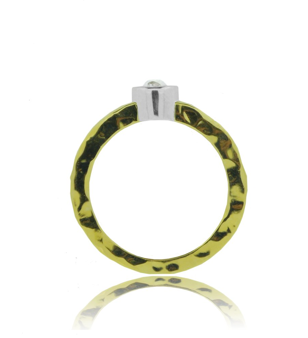 Gold - 18kt yellow hand hammered - 11 grams - White Gold Bezel