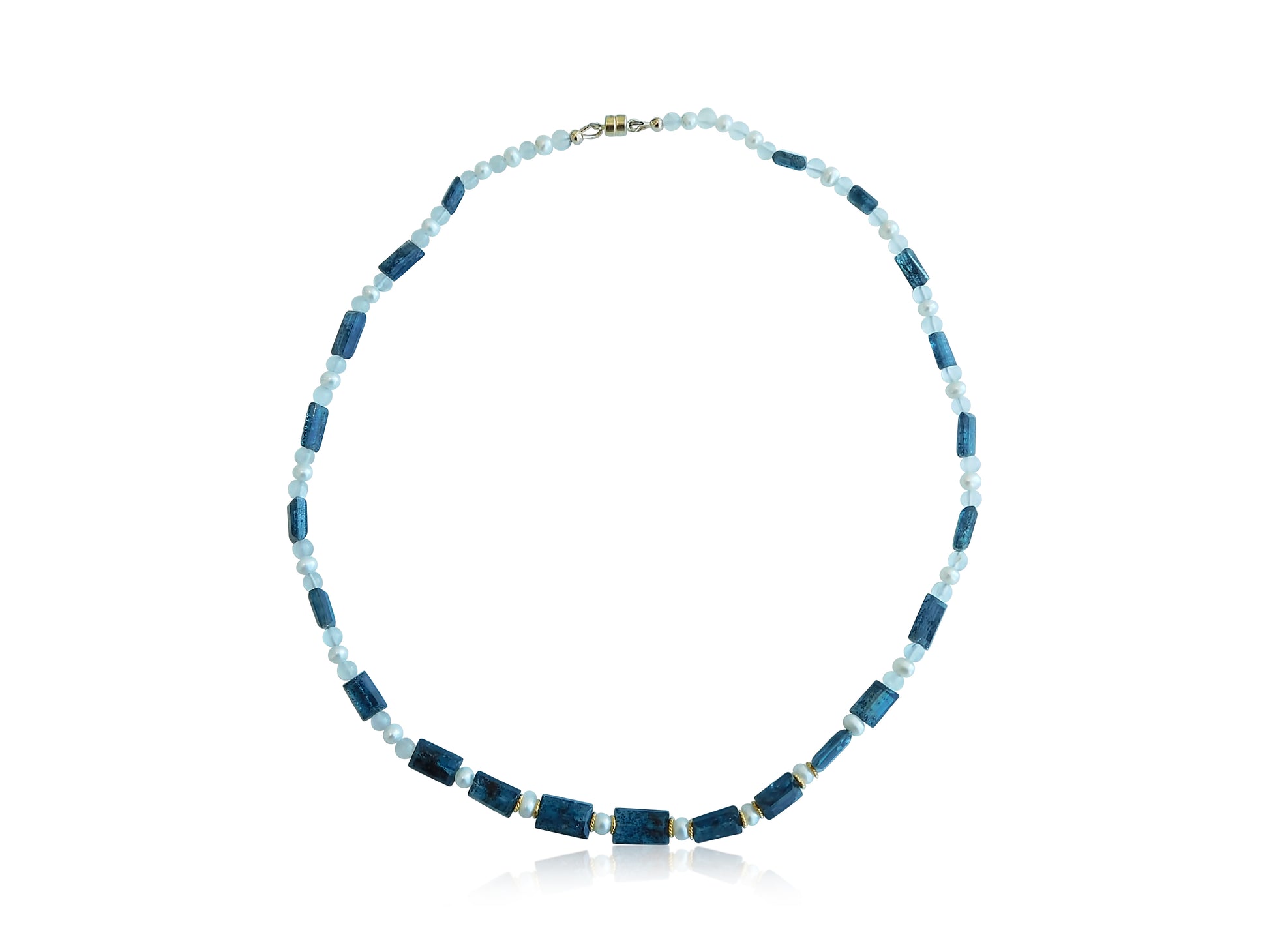 Kyanite and seed pearl with 14kt yellow gold beads and magnetic clasp