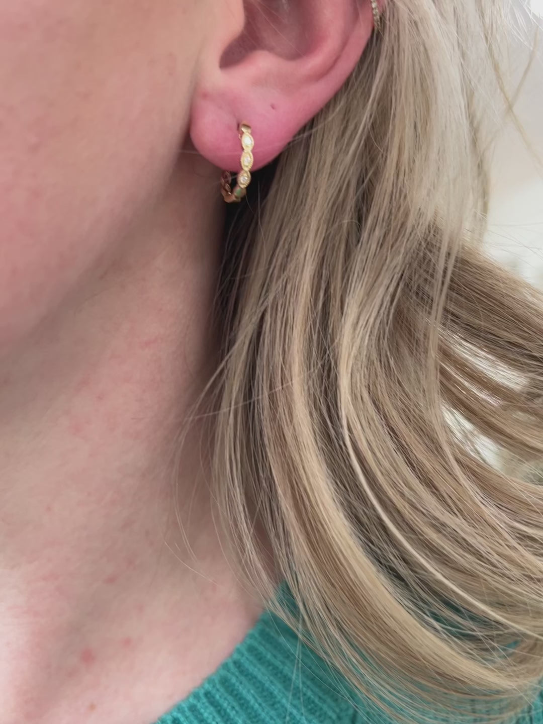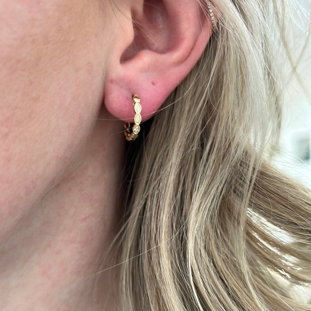 Milgrain Diamond Hoop Yellow Gold