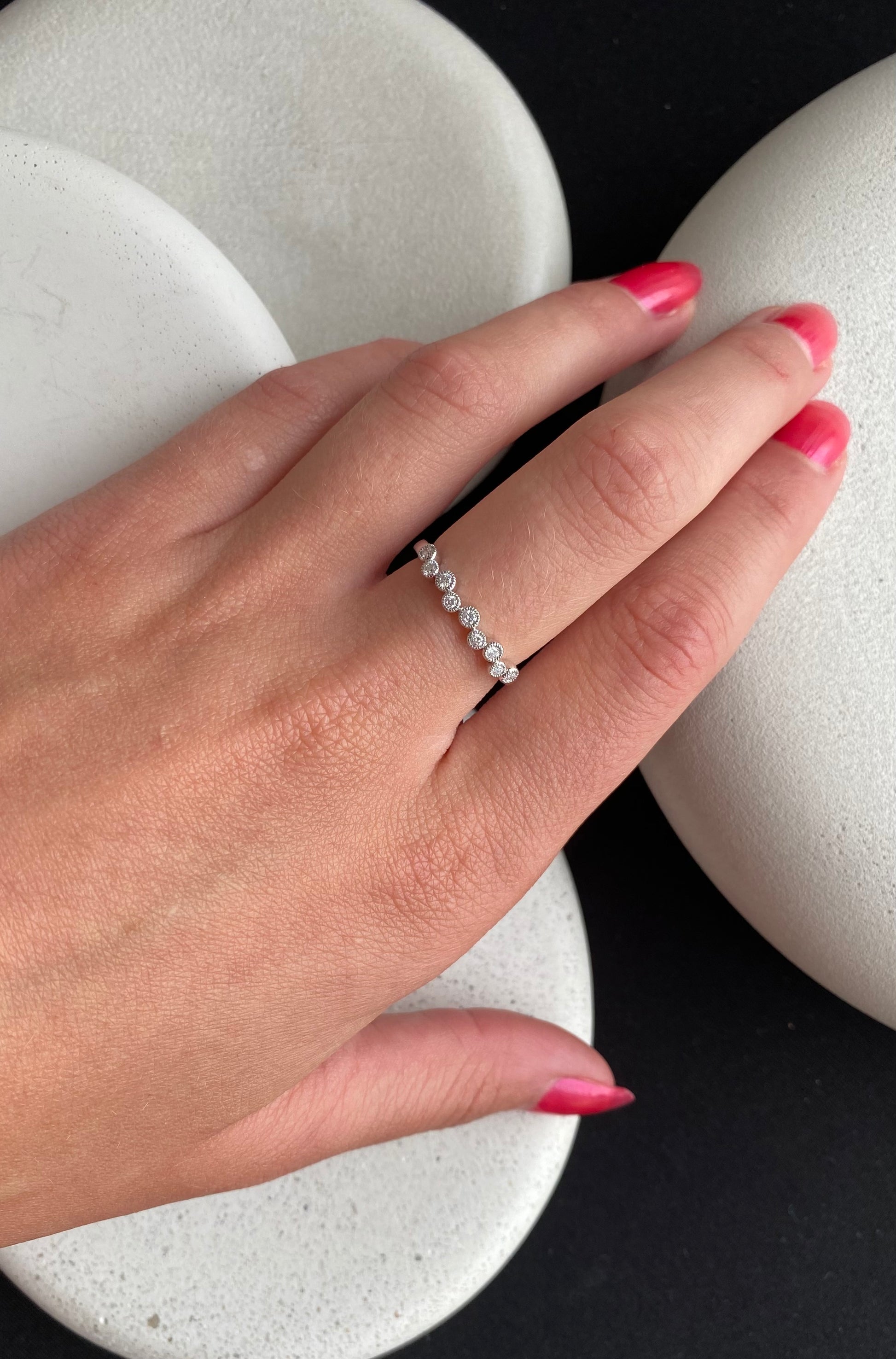 Perfect alone or as a stacker. This cute band features diamonds: 0.15ct total weight