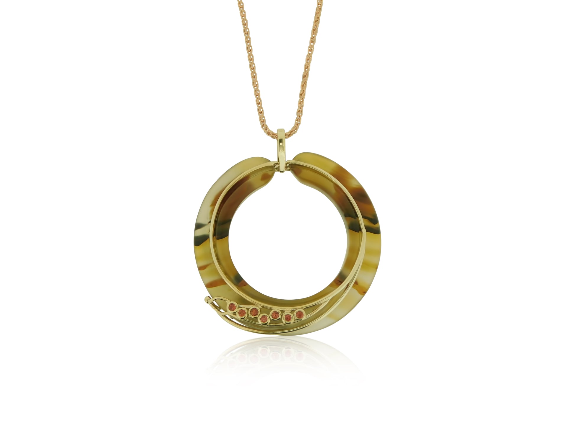 Montana Agate and orange brilliant sapphires set in hand forged 14kt yellow gold.