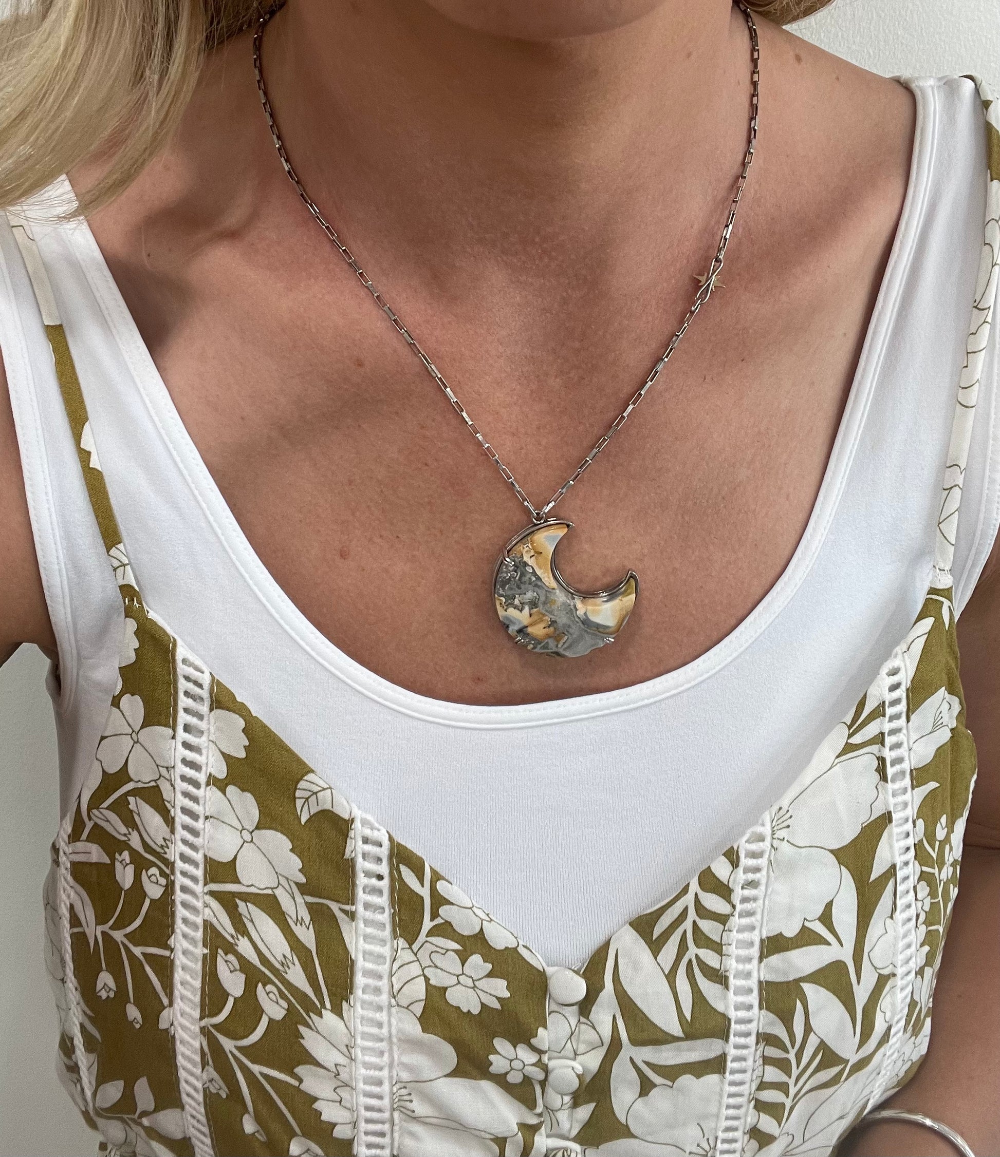 Jasper moon in rich earth tones - length 1.5 inches