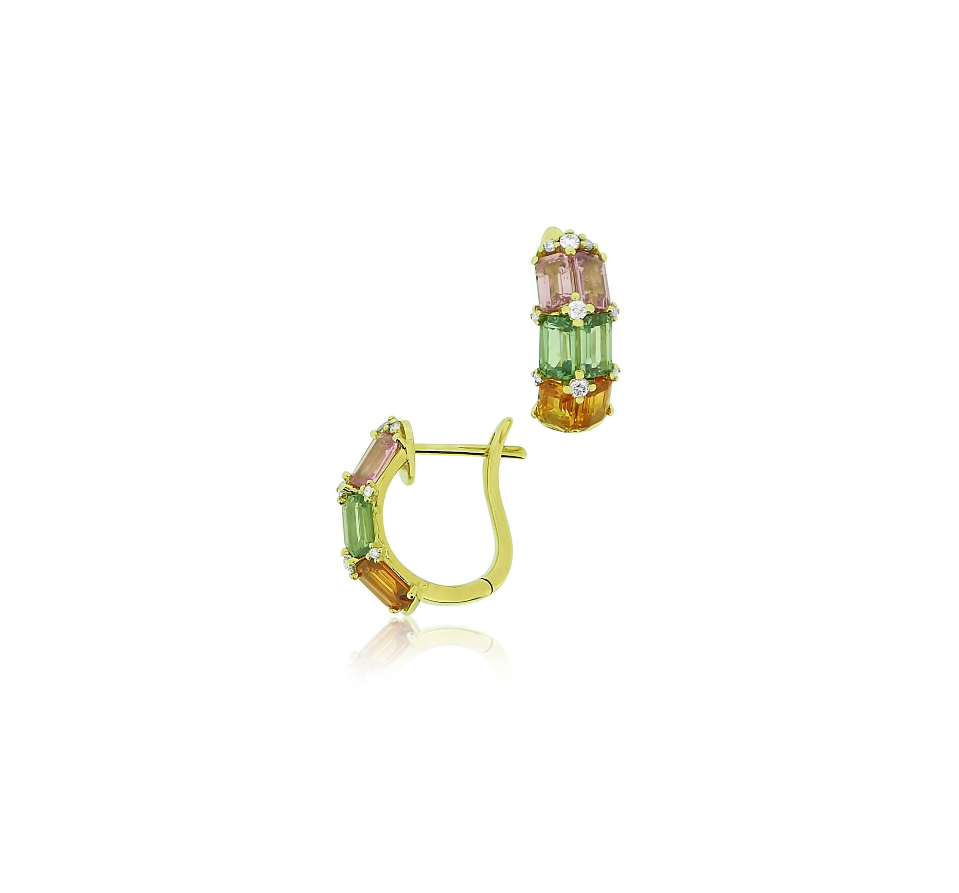 Genuine sapphires: emerald cut: pink, green and golden: 4.32 ct tw