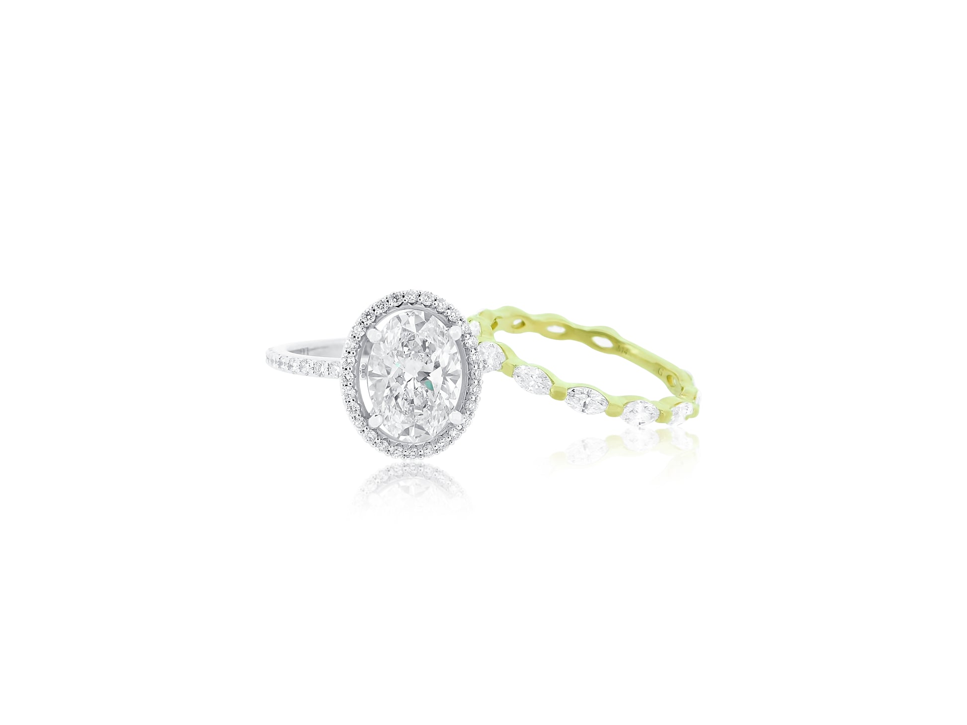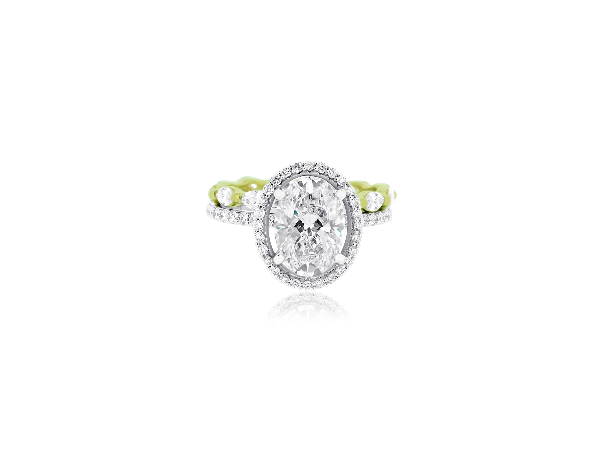 Oval Diamond Halo Ring with Gold Band