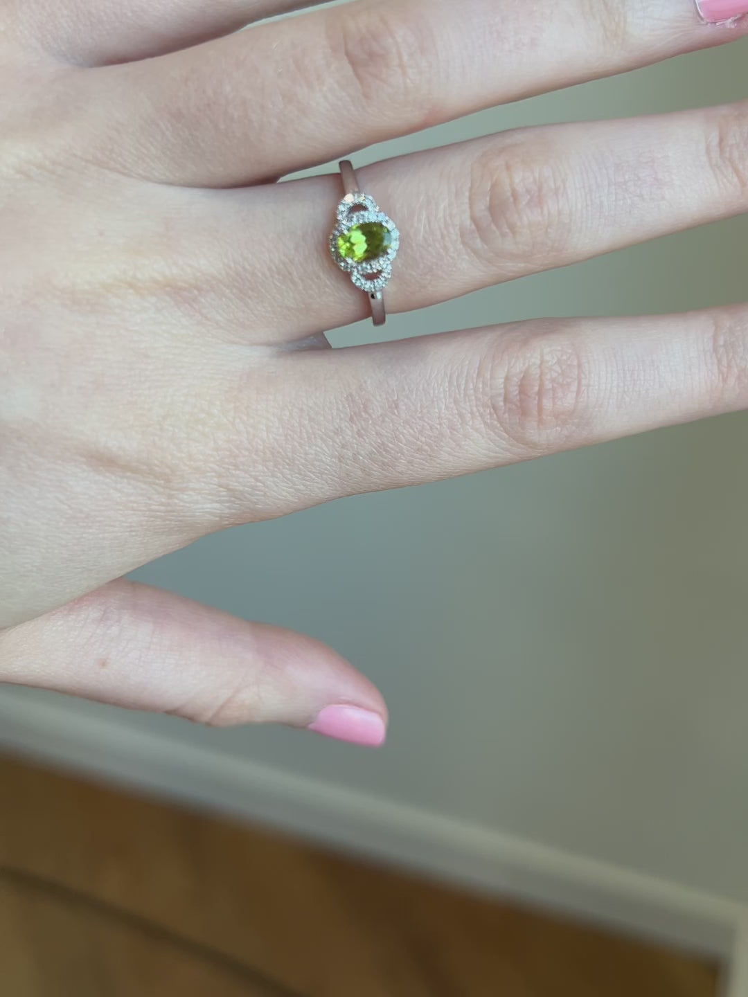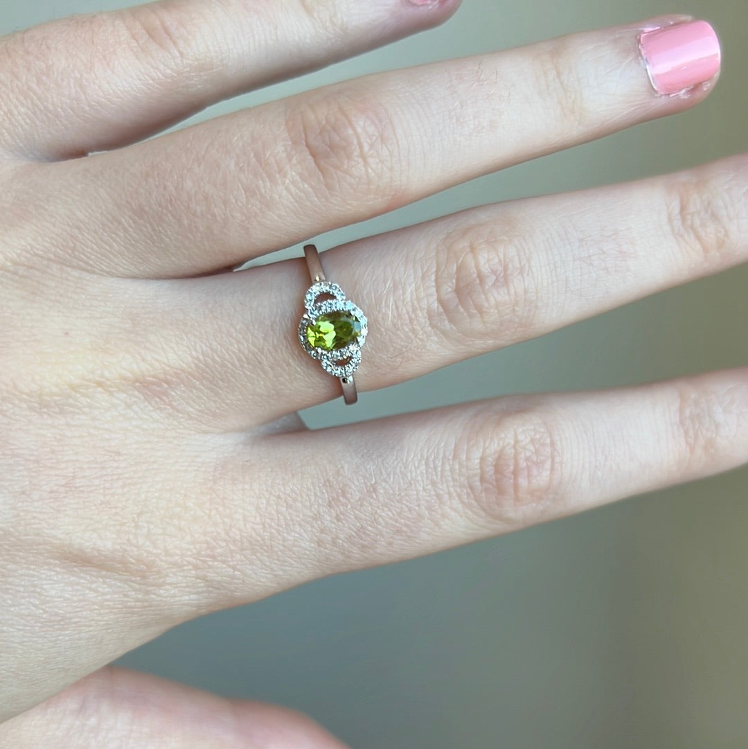 Peridot Diamond Halo Ring