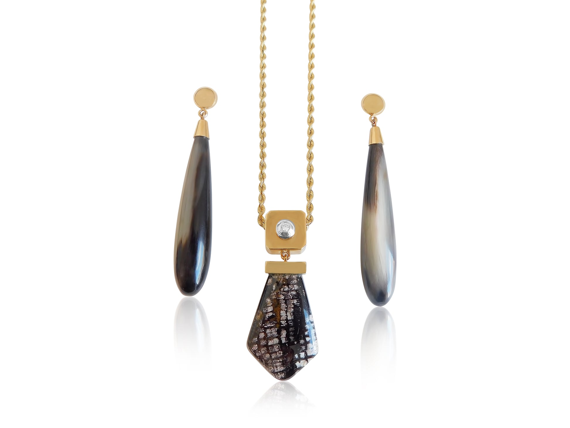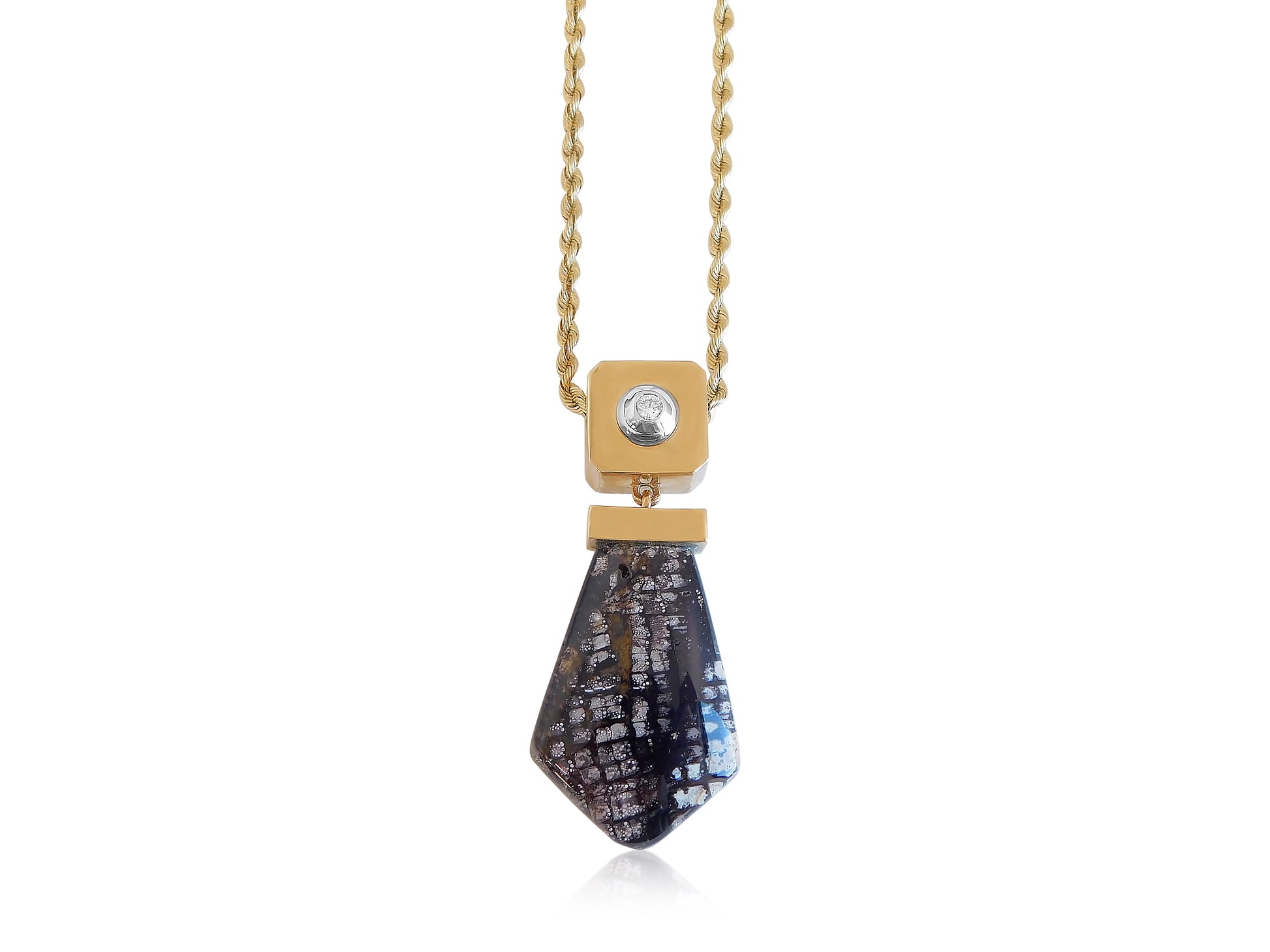 Gold - 14kt yellow gold hand fabricated mounting with reversible chain