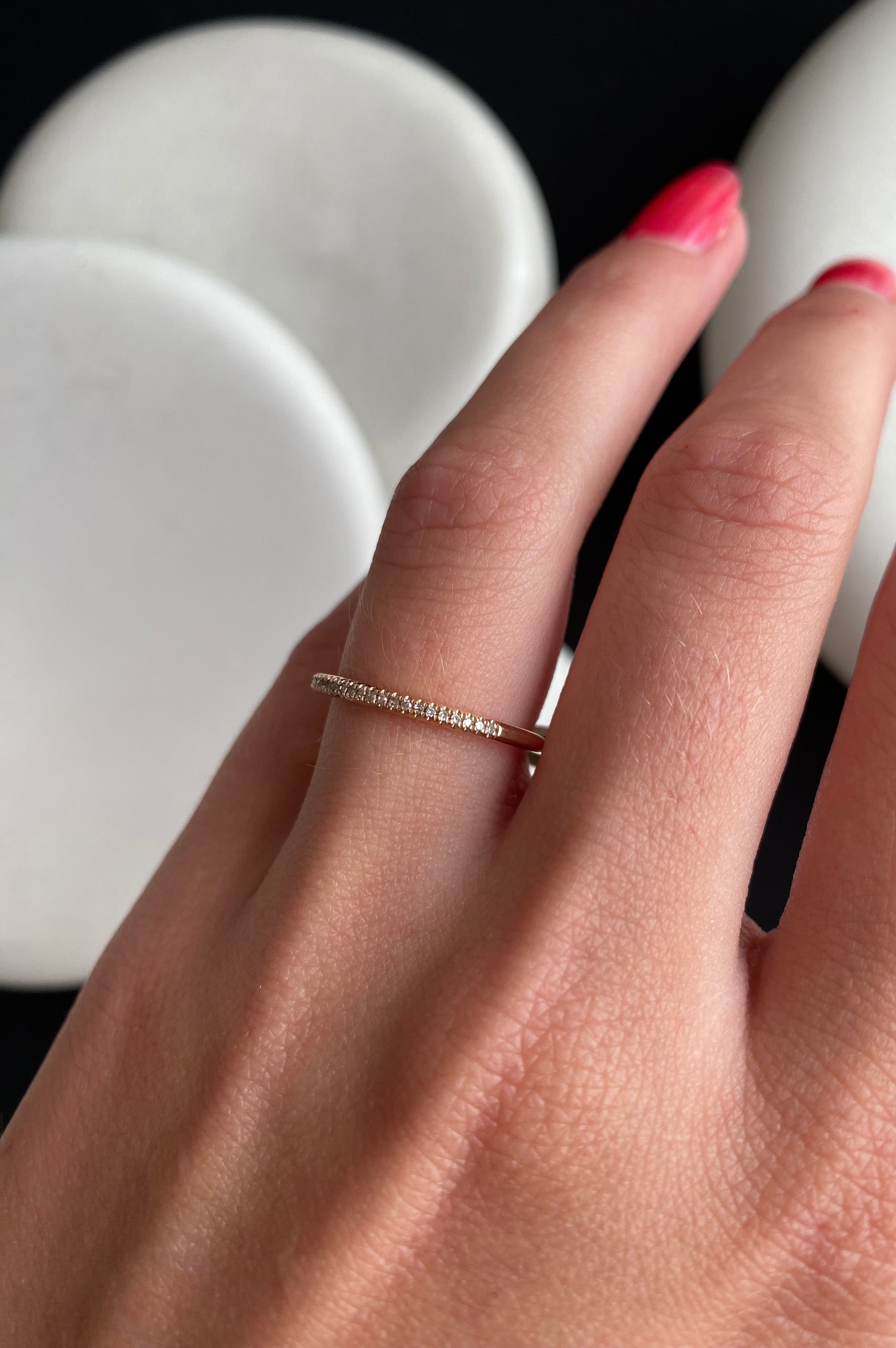 Perfect on its own or as a stacker. This delightful band features diamonds: 0.07ct total weight.