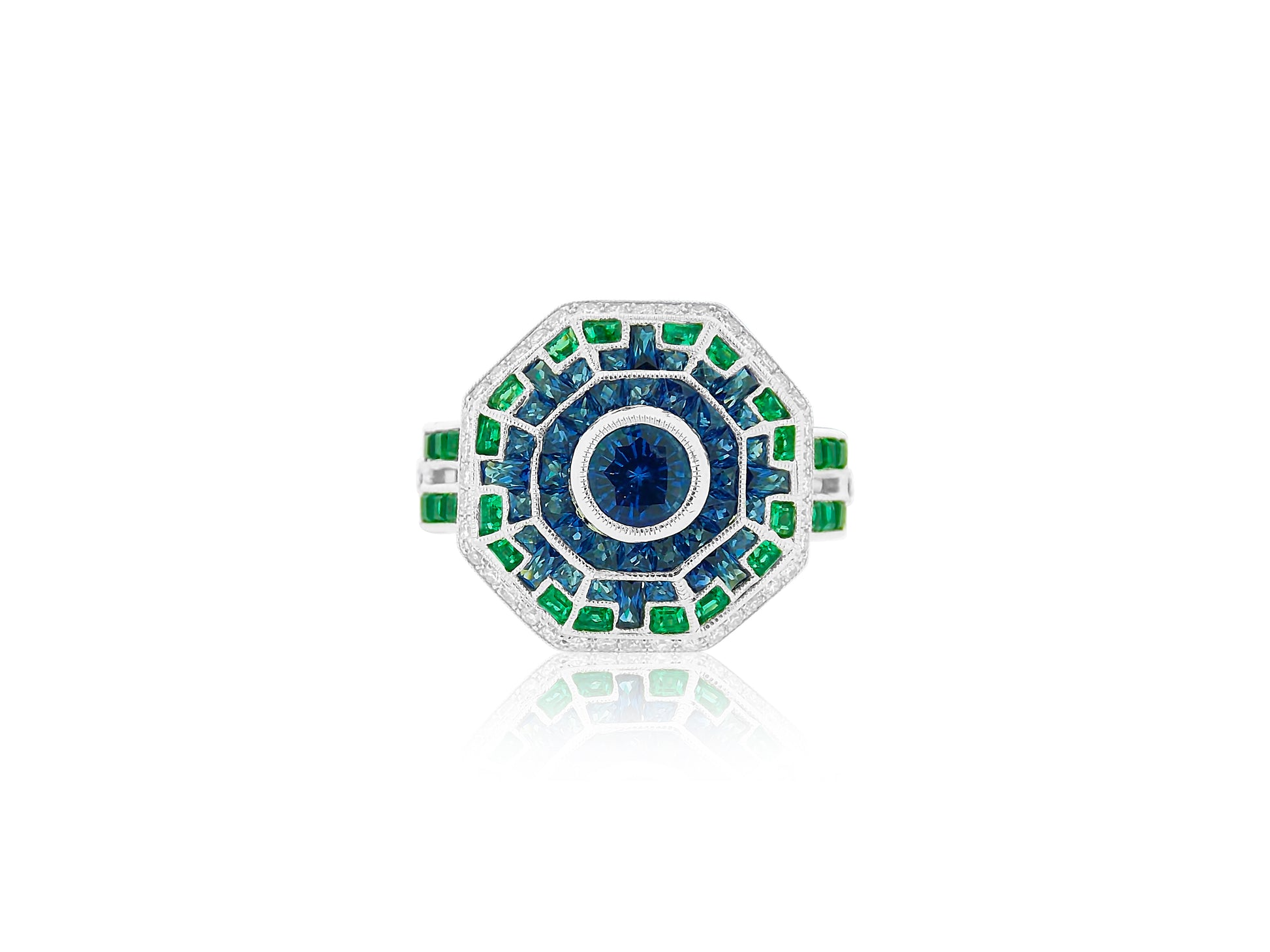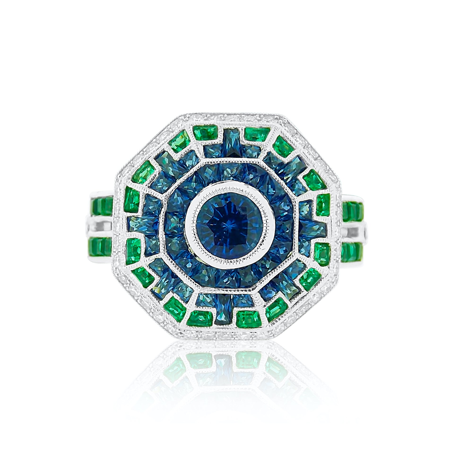 Approximate weight of stones: Sapphire 2.30 carats, Emerald .20 carats, Diamonds .20 carat total weight