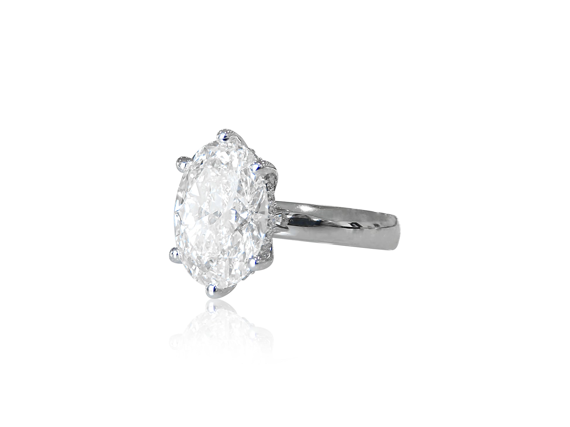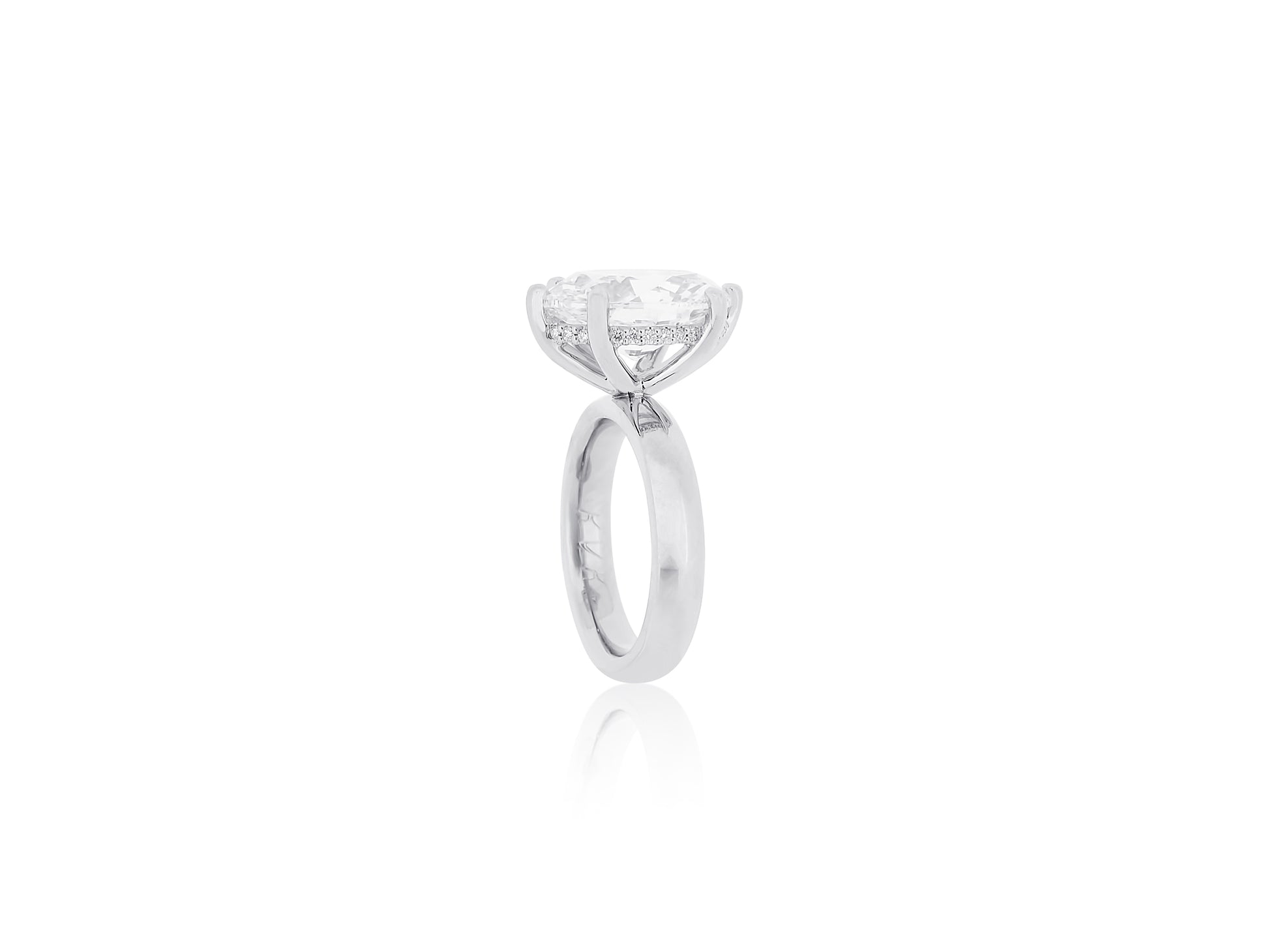 This is nature at it's finest! This very rare oval, natural diamond is breathtaking. It is set in a hand fabricated platinum setting with a hidden diamond halo. It is impossible to capture it's beauty in a photograph. But...to see this elegant ring, just like the lovely lady that wears it...spectacular!