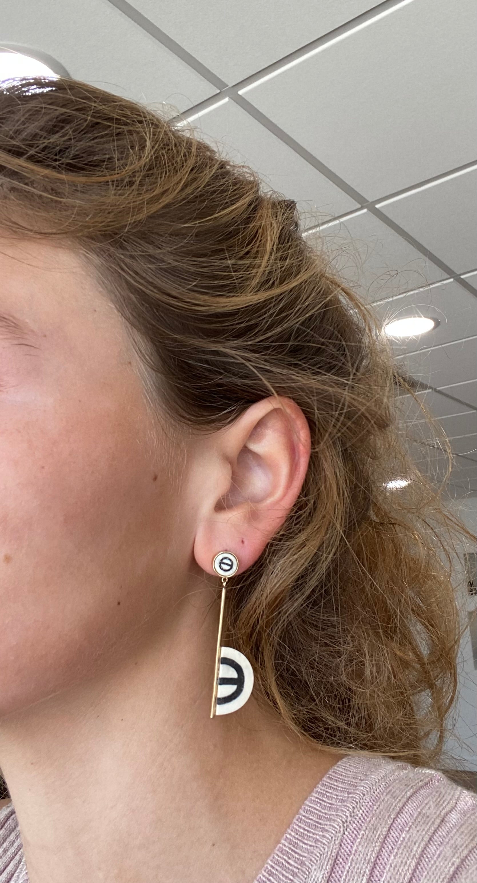 Fossilized Woolly Mammoth Ivory Inlaid Half Circle Earrings